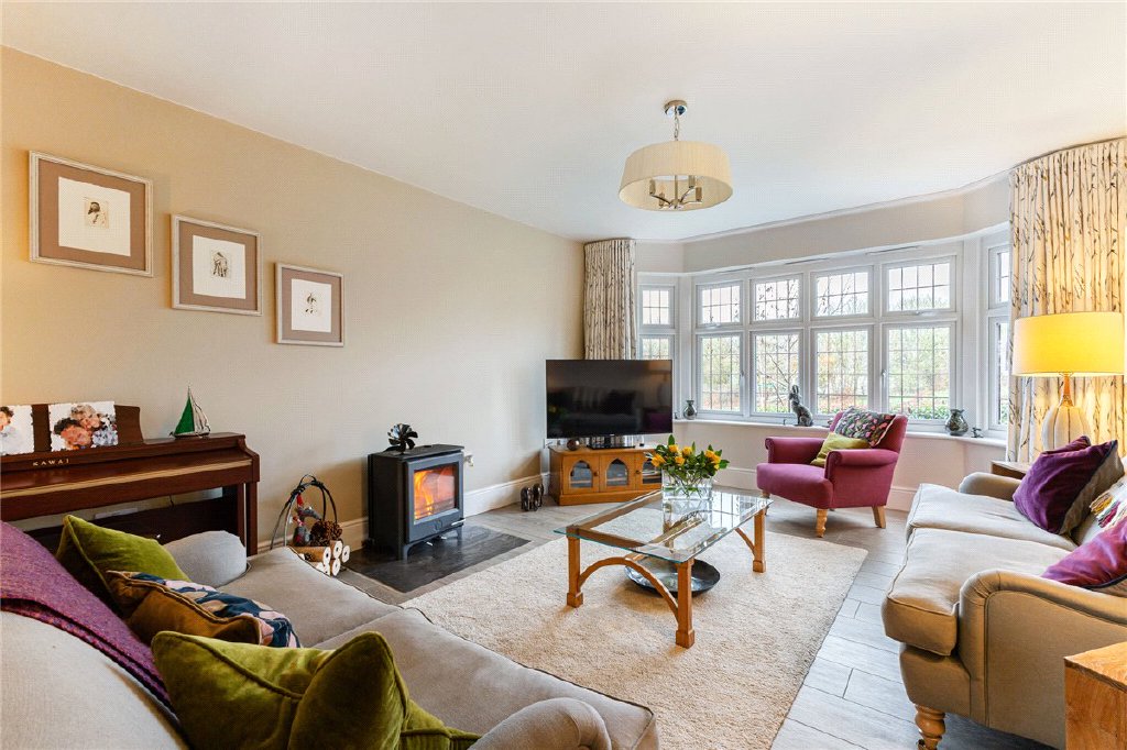 Upon entering the property, you are greeted into the large and welcoming hallway from which all the main reception rooms are accessed, with all rooms having the added benefit of underfloor heating. The living room is centred around the wood burning stove and has a bay window enjoying lovely views over the open green space to the front. The open plan kitchen/breakfast room is the perfect place for family meals or for entertaining guests. The adjacent dining room has doors opening out to the rear garden and there is also an adjoining family room, perfect for children to sit and play or watch tv whilst meals are prepared. A utility room provides a usual spot for boots and muddy paws and has direct side access to the property and door to the double garage. A cloakroom and coat cupboard complete the downstairs accommodation. The property is hard wired for broadband throughout downstairs, in the main bedroom and in the study, making it ideal for families with lots of devices or those who need to work from home.