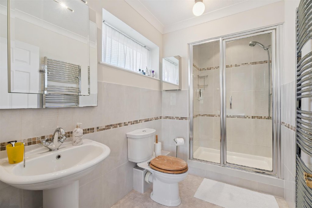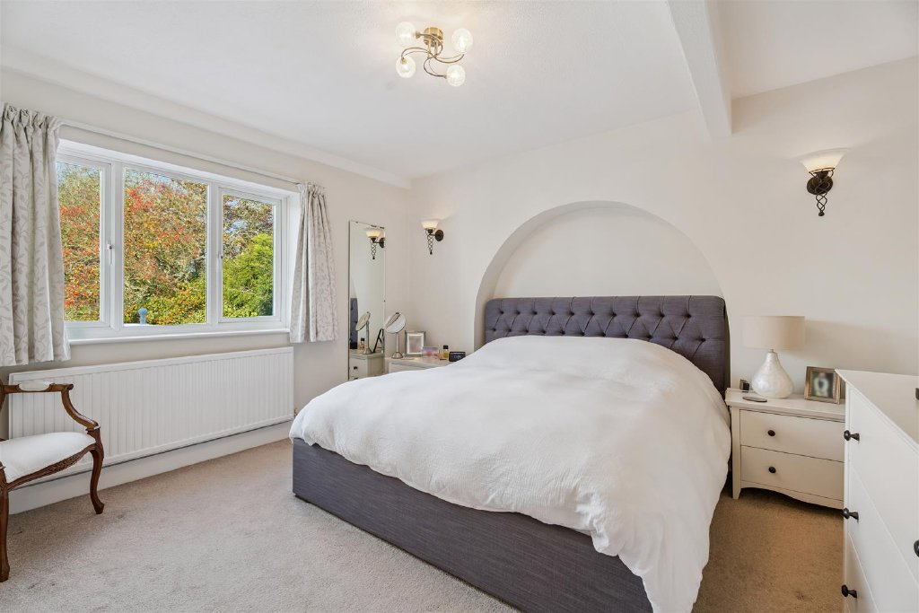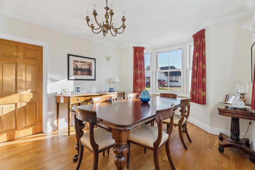 On the first floor there are five bedrooms, two having en suite facilities, one with an Aqualisa remote control facility. The Master bedroom is elegant and spacious and apart from its en suite shower room has a custom built walk in wardrobe. The guest bedroom enjoys en suite facilities and thereafter there are three further bedrooms and a family bathroom.