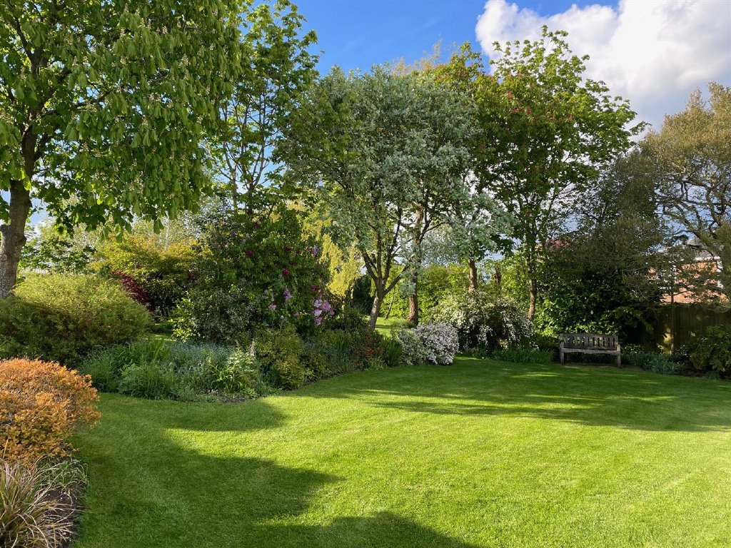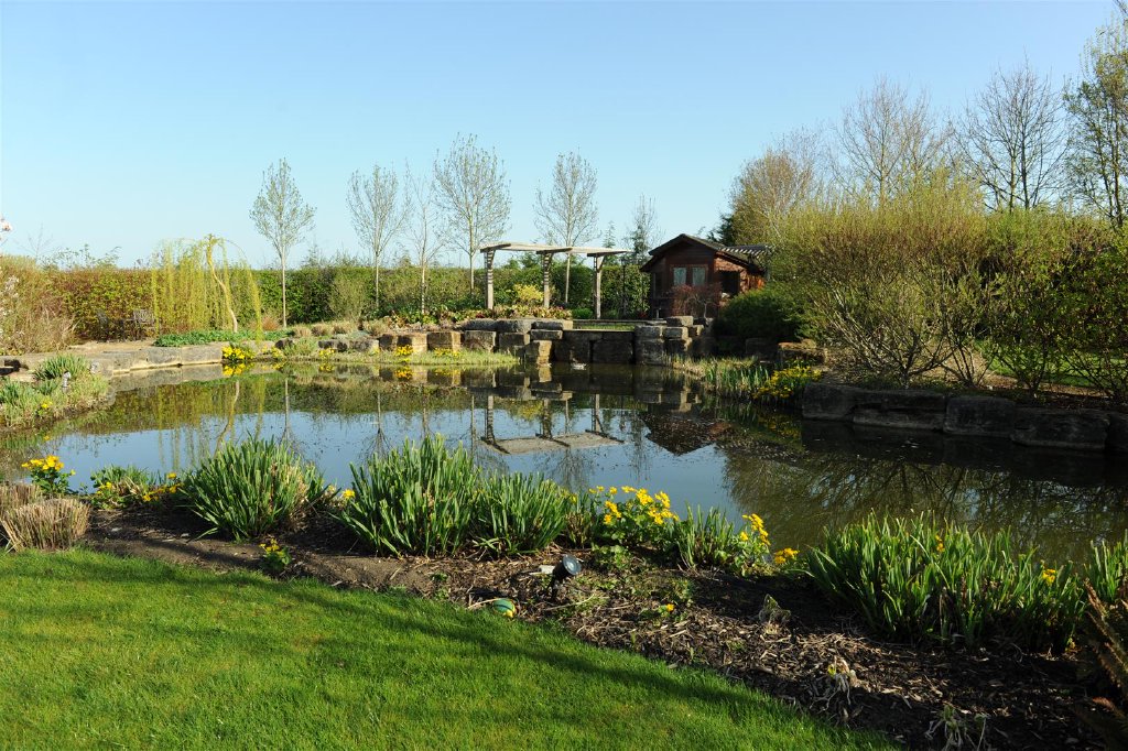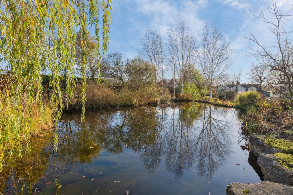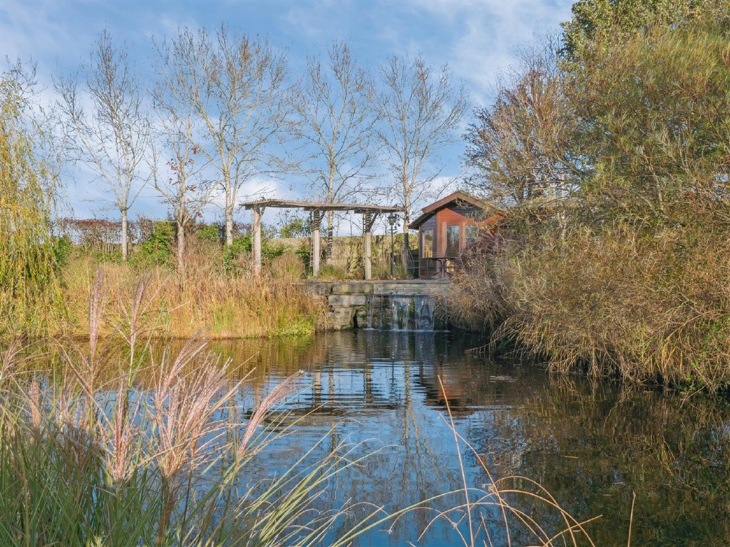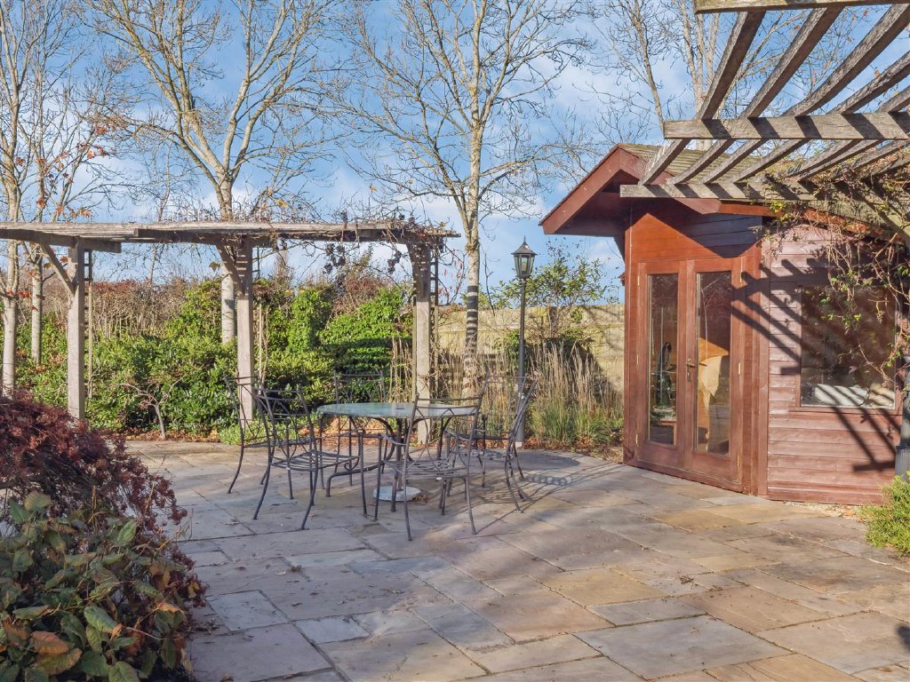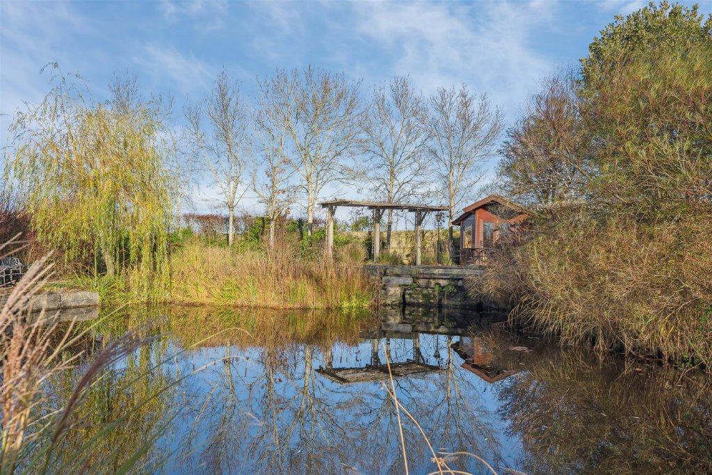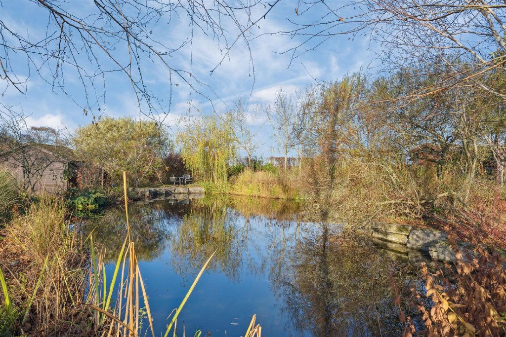 Directly behind the property is a large expanse of patio assembled from random width flagstones which benefits from external lighting. The grounds extend away from the property on a slight incline with a central pathway bisecting the considerable areas of lawn. The lawns are populated with many and varied tree species to include willow, apple, silver birch and Canadian maple. The boundaries are defined by tall hedgerows providing privacy and seclusion. A large carp pond stands to the top of the garden and is a lovely feature. Additional wooden outbuildings house the controls for maintaining the pond and also for provision of an irrigation system to assuage the needs of the gardens in warmer weather. There is also a Summer house which overlooks a further patio area at the head of the pond providing a tranquil seating area during the balmy summer evenings.