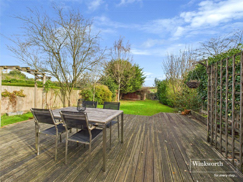 To the rear, a sizeable garden offers wonderful outdoor space, featuring a decked area for alfresco dining and a lawn perfect for children to play or for keen gardeners to enjoy.