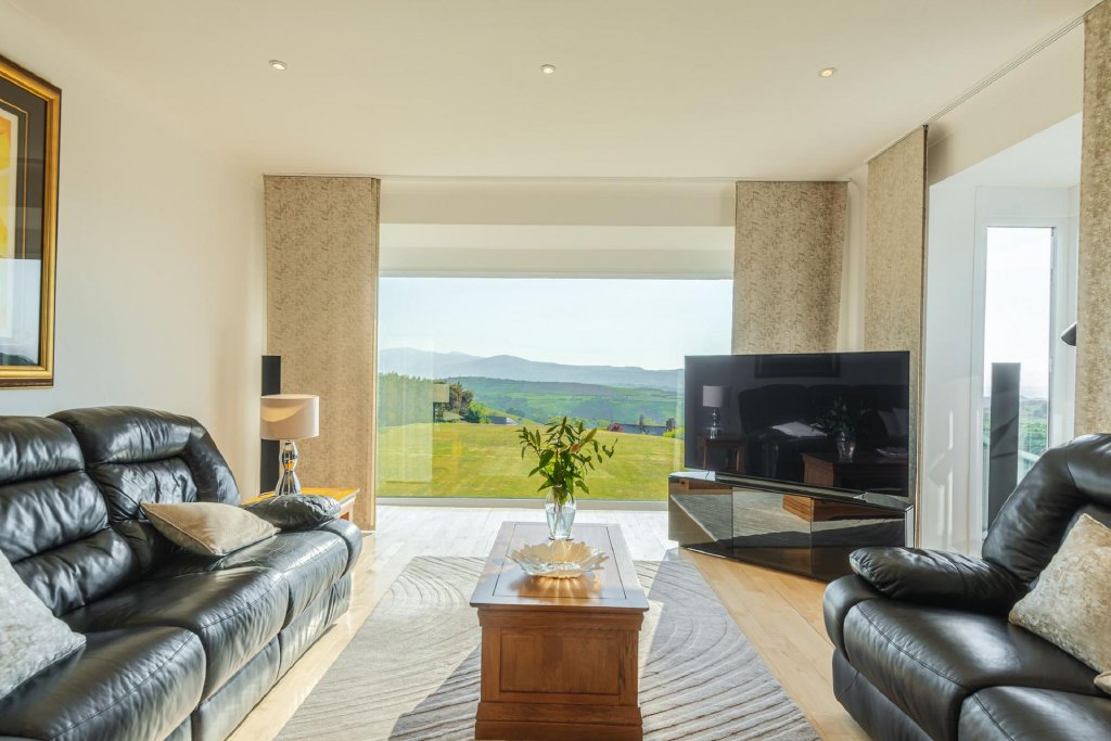 A striking, contemporary residence, with a leisure suite, four double bedrooms, set in approximately 0.6 acres of gardens and with sensational views over the infinity style garden towards Conwy Castle, the Great Orme, the Carneddau mountains, Puffin Island and Anglesey.