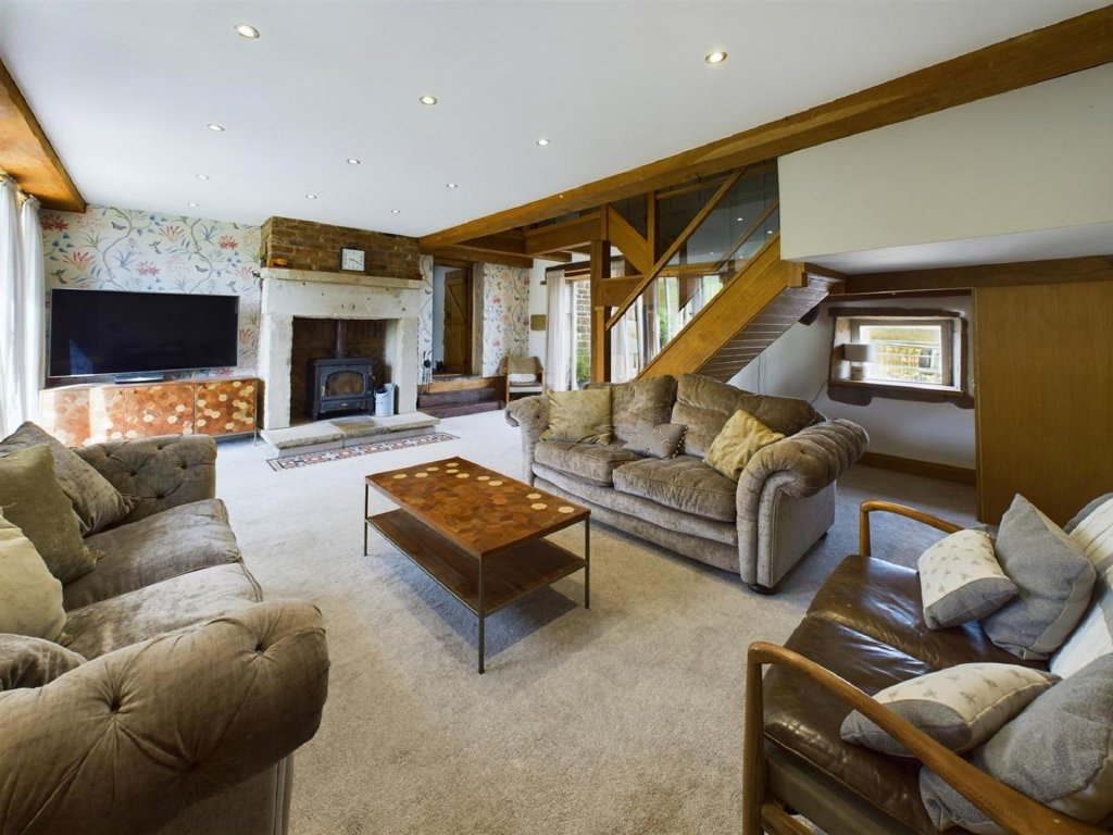 The lounge is a serene space for relaxation, its picture window framing uninterrupted countryside views, while a further reception room or sixth bedroom offers flexibility, it is ideal for guests, a playroom, or home office.