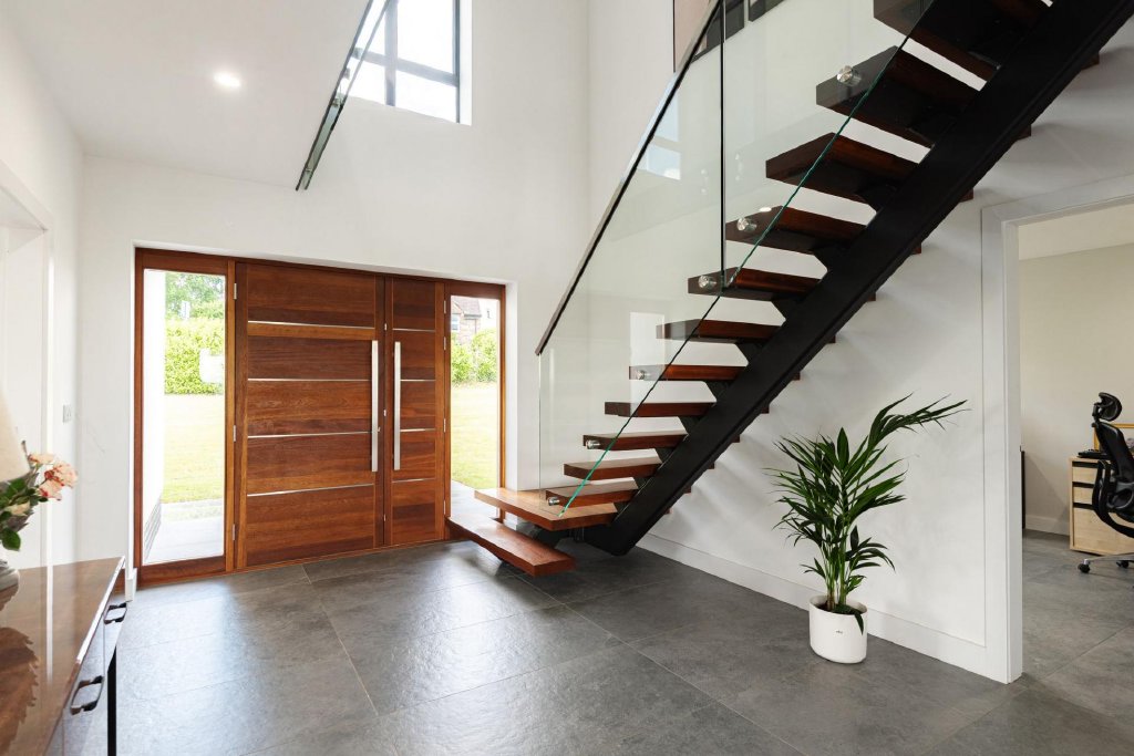 Cross the threshold and be greeted by a modern entrance hallway, where a bespoke, Iroko, staircase rises like a work of art, setting the tone for the exceptional quality within. The ground floor flows with purpose and style, offering spaces that cater to every facet of your life.
