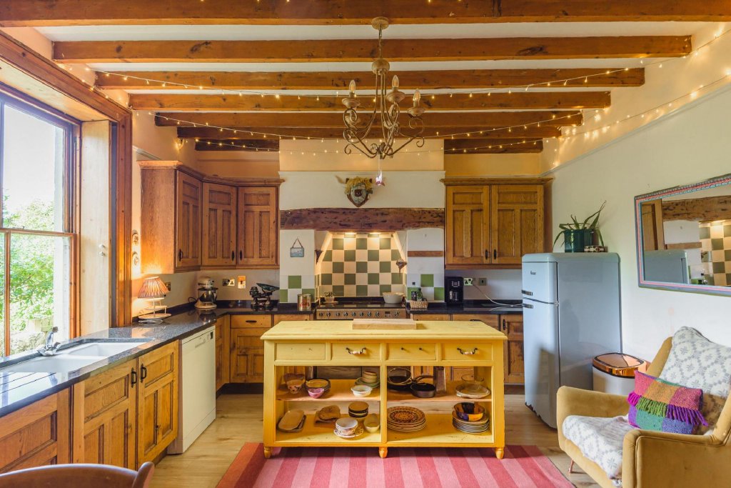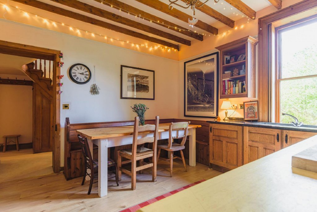 As you enter, you are greeted by a kitchen that exudes a quintessential Victorian feel, featuring beautifully proportioned high ceilings and a stunning sash window that frames picturesque views over the valley. The solid wooden units, complemented by granite worktops, create a warm and inviting atmosphere, perfect for culinary adventures and family gatherings.