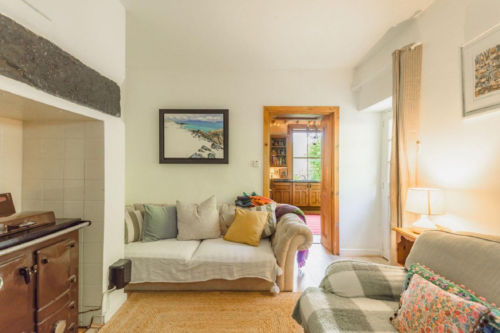 Just off the kitchen, discover a cosy snug that invites relaxation. With its own access, this intimate space is perfect for curling up with a good book or enjoying a quiet evening by the Rayburn, ensuring you stay toasty through the winter months. The impressive stone lintel above adds a touch of history, making this snug a delightful retreat from the hustle and bustle of everyday life.