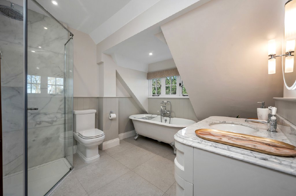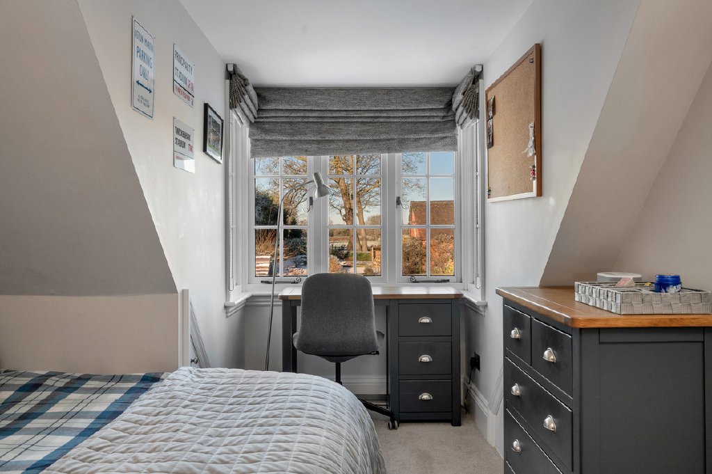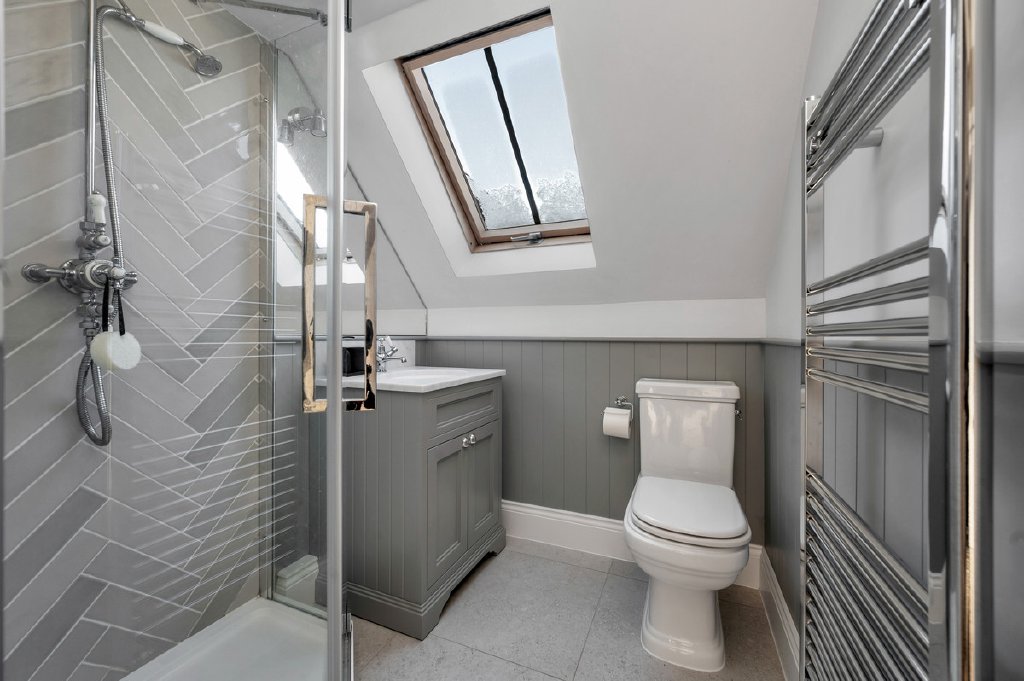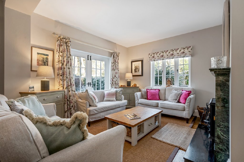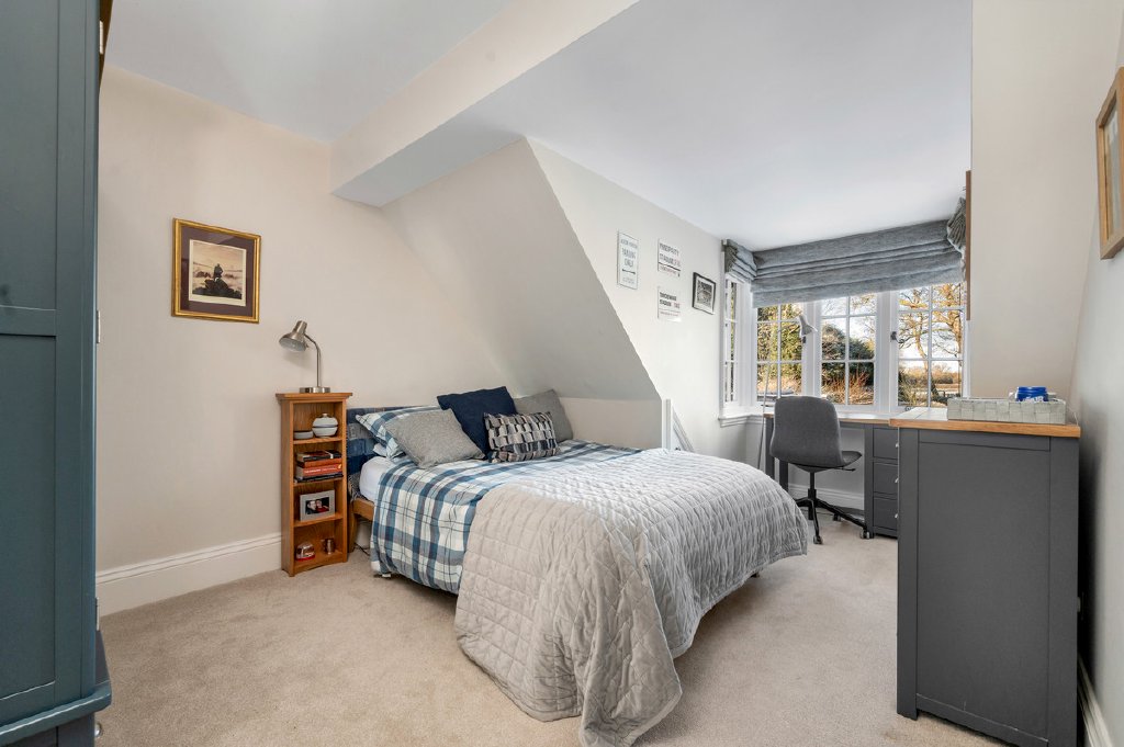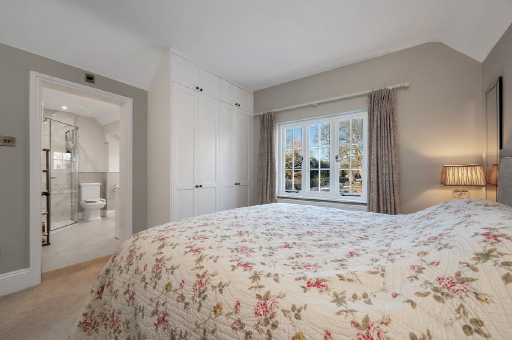 On the first floor there are four well-appointed double bedrooms. The principal bedroom enjoys delightful garden views and benefits from fitted wardrobes by Holmetree, an original fireplace and a beautifully finished, recently refurbished ensuite bathroom, complete with a WC, vanity basin with marble counter top, roll-top bath and marble shower enclosure. The remaining three double bedrooms are all generously proportioned, each enjoying its own outlook across the surrounding landscape or village scene, and are served by two further shower rooms, which have also been fully renewed and stylishly appointed, ensuring comfort and convenience for both family and guests.
