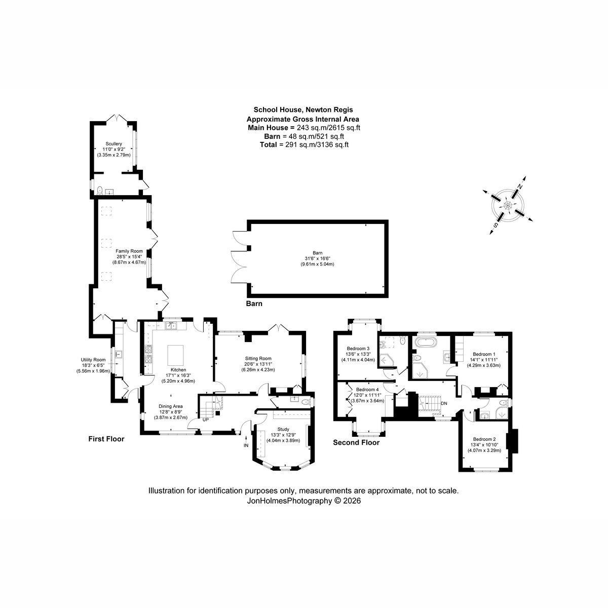 The kitchen diner forms the heart of the home, a space that is both functional and characterful. Designed with entertaining in mind, this room flows naturally into the sitting room and beyond to the extensive family room, allowing for relaxed gatherings and everyday living.