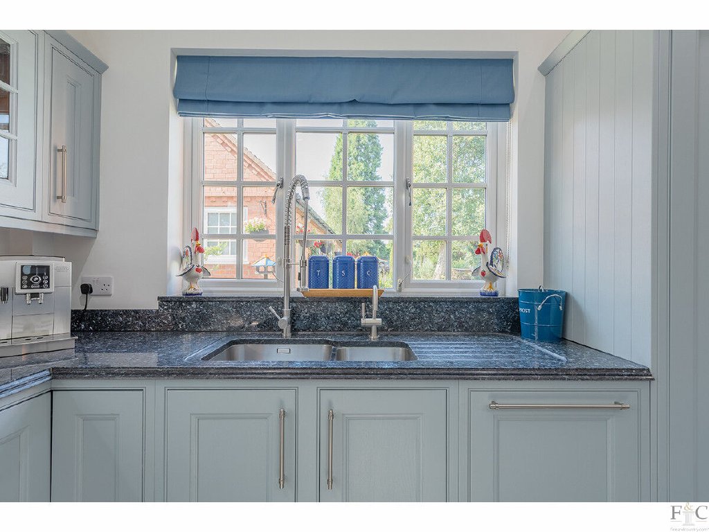 Coordinating units can be found in the utility room and Butler’s pantry where plumbing suitable for a vented tumble dryer and washing machine has been installed beneath the traditionally styled oak work tops. Large neutral shaded floor tiles have been used throughout these areas, linking them together for practicality and continuity.