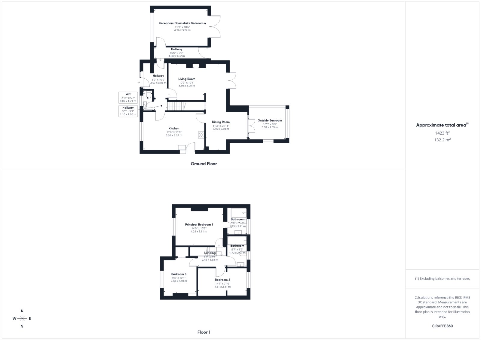- Three reception rooms
