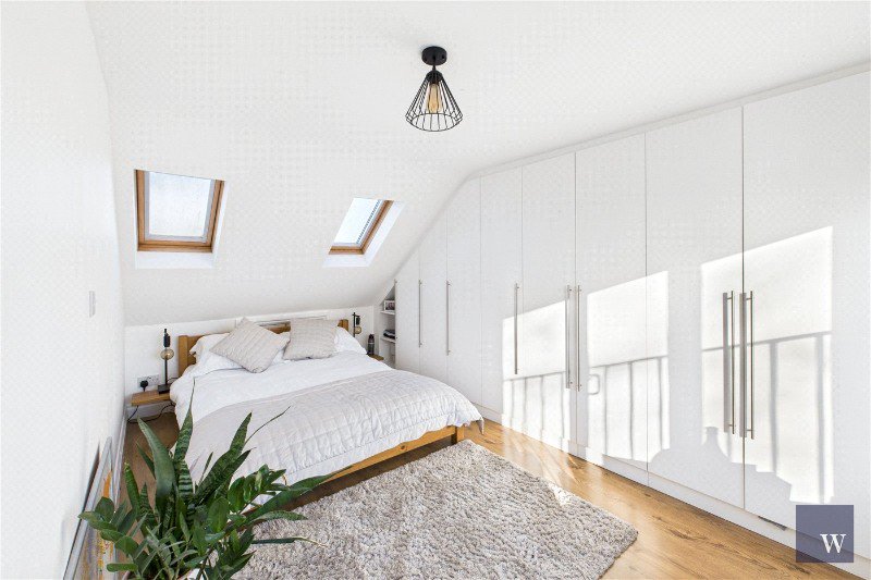The first and second floors offer four well-sized bedrooms, each beautifully presented, including a top-floor bedroom with skylights and an en-suite. All three bathrooms are finished to a modern standard, with high-quality fittings and contemporary tiling.