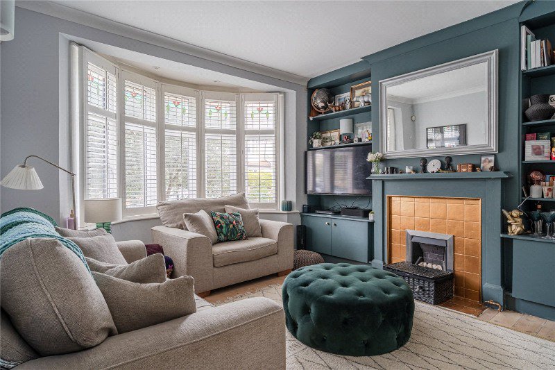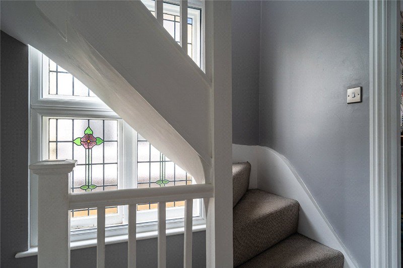 Set on a quiet, family-minded no-through road, this bright 1930s home unfolds over three floors with a superb garden studio. A gravelled front drive framed by two mature olive trees leads to a welcoming hallway where original stained-glass panes have been protected with secondary glazing. Two useful understairs cupboards hide the washing machine, utilities and wine racks, and there’s a guest WC with space for coats and the boiler.