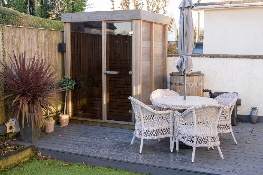 On approach a driveway offers ample off street parking, there is a central lawn and raised flower and shrub borders, EV point, storage shed, feature lighting and useful side access. The rear garden offers superb entertaining spaces to include a patio positioned to enjoy views over the open countryside - ideal for al fresco dining, a central lawn then leads to a deck where a sauna and plunge tub (available by separate negotiation) provide further opportunities for relaxation.