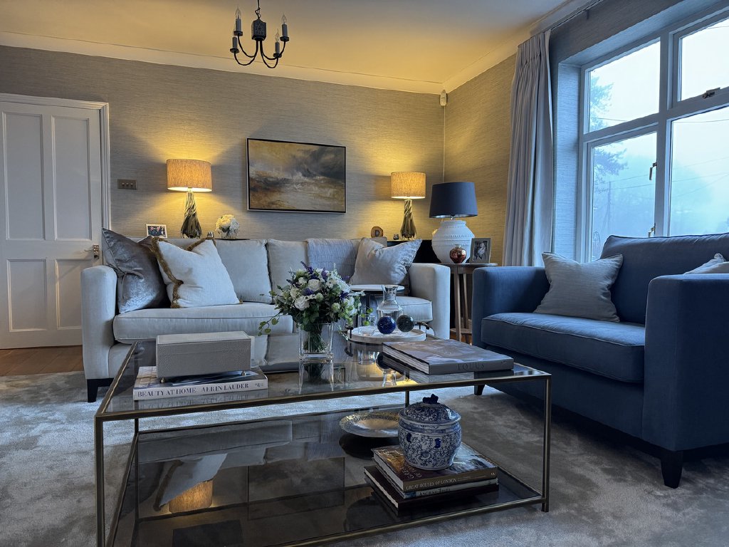 The main staircase leads to the first floor, where the principal bedroom suite is particularly impressive, featuring Sharps fitted wardrobes and a dual-aspect layout that once again captures the far-reaching views. This floor also offers a beautifully designed bathroom with a sunken bath and separate shower, creating a relaxing sanctuary. The fourth bedroom is currently arranged as a luxurious dressing room, complete with fully fitted Sharps wardrobes and a bespoke vanity area. A stylish cloakroom completes the accommodation.