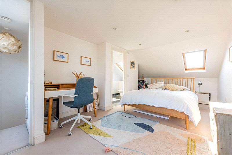 The home comprises four generous double bedrooms, including a principal bedroom with en suite shower room, and a spacious family bathroom featuring a striking roll top bath and walk in shower.