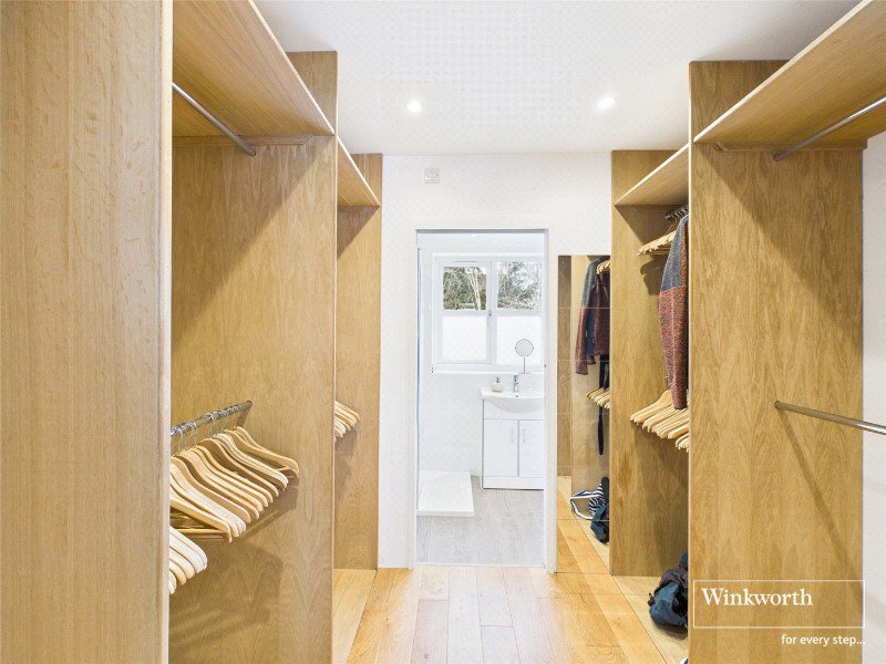 Upstairs, the principal bedroom suite offers a dressing room and en-suite shower room, along with direct access to a private balcony overlooking the river — a tranquil retreat with ever-changing views. Four further well-proportioned rooms are arranged on this floor, one with its own en-suite; the fifth bedroom is ideally suited for use as a home office or study, all benefitting from excellent natural light through large windows.