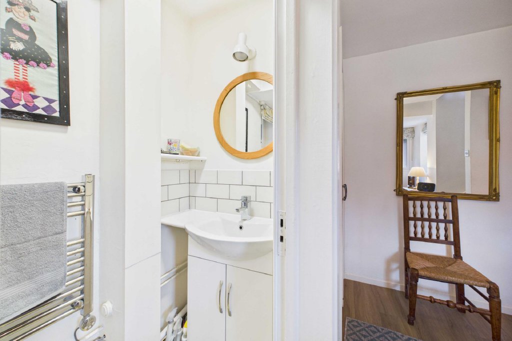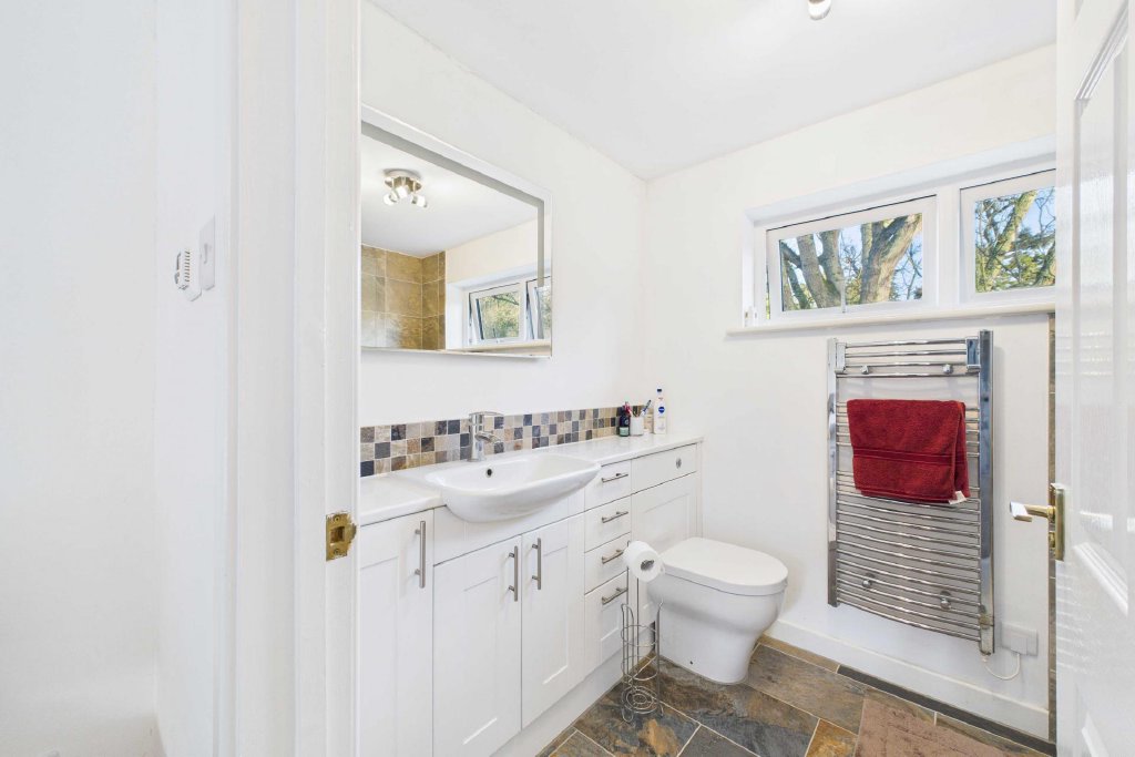 CLOAKROOM With WC and vanity wash basin; chrome electrically heated towel rail; UPVC sealed unit double glazed window; LVT flooring.