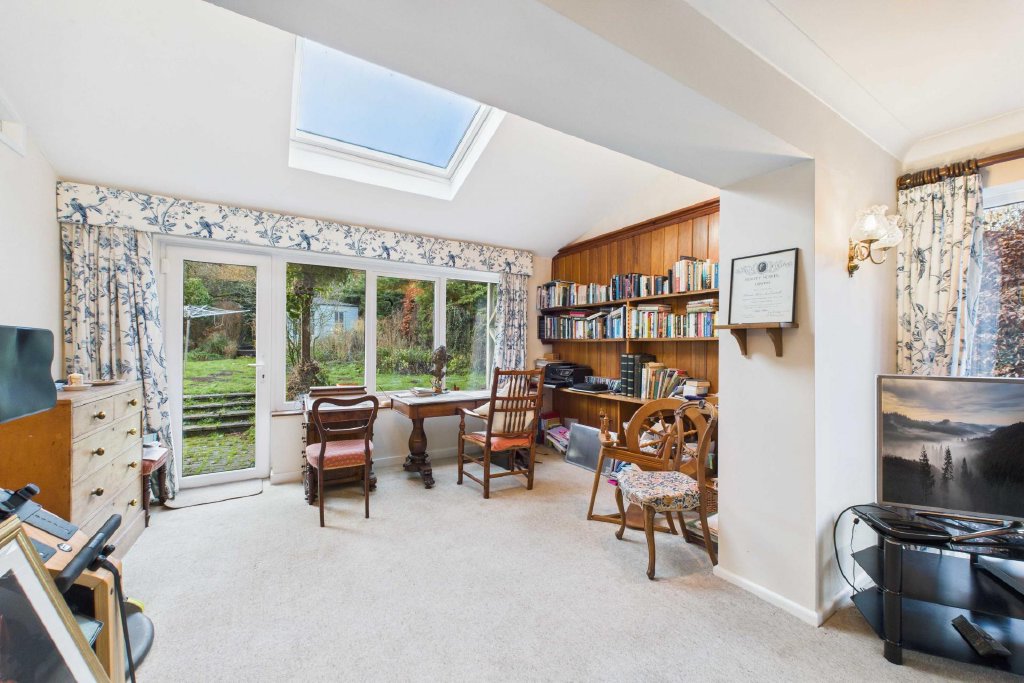 'Hornbeams' offers exceptionally versatile accommodation, adaptable to a variety of lifestyles. Originally arranged with four first-floor bedrooms, two have been combined to create a spacious principal bedroom with en-suite shower room. To the ground floor, the main living room and snug provide generous living space, complemented by a separate breakfast room and an impressive rear family room featuring a vaulted ceiling. Further highlights include a useful ground-floor office or den, leading via steps to a delightful "secret" room with built-in bunk beds-an imaginative hideaway ideal for children or visiting grandchildren. In addition, a fully plastered and decorated hobbies room located to the rear of the garage offers excellent flexibility and could serve a wide range of uses.
