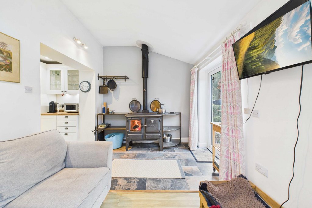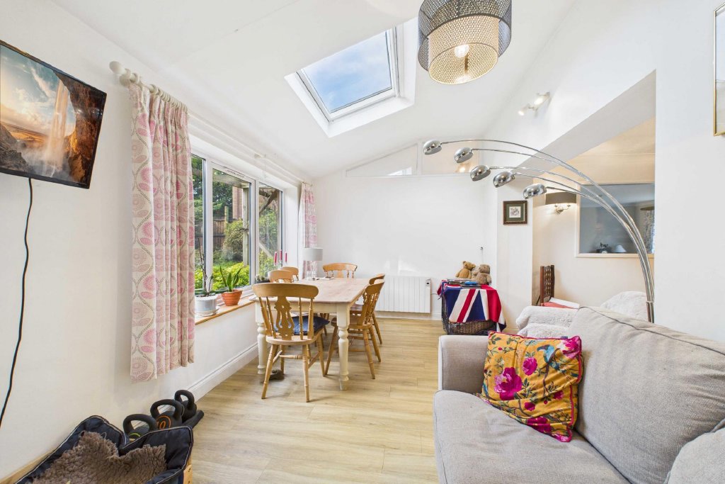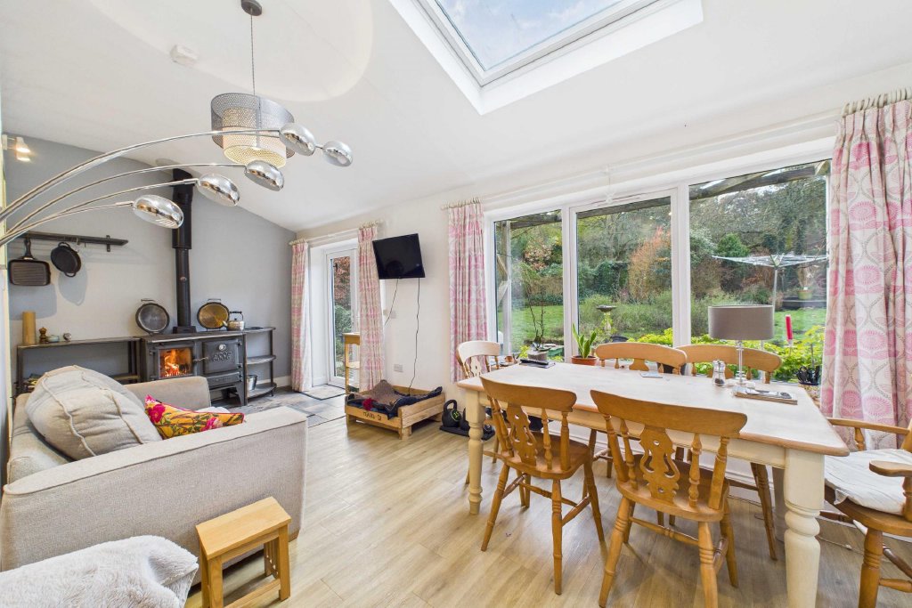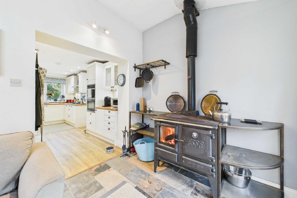 FAMILY ROOM 20' 11" x 9' 0" (6.40m x 2.75m) With vaulted ceiling and Velux window; Electric panel radiator; Ironheart Esse wood-burning stove with oven and twin hot plates; UPVC sealed unit double glazed window to rear aspect and UPVC sealed unit double glazed doors to rear garden; part tiled and LVT flooring.