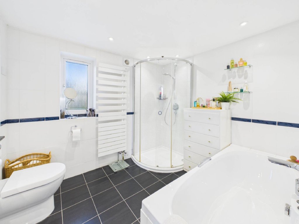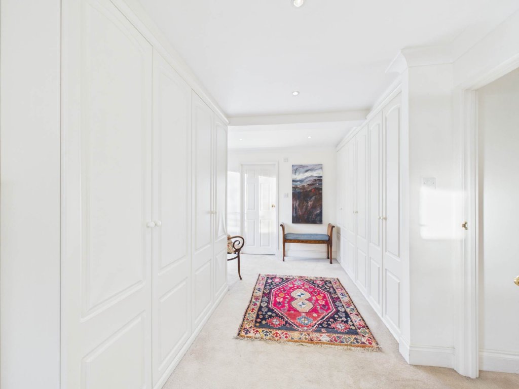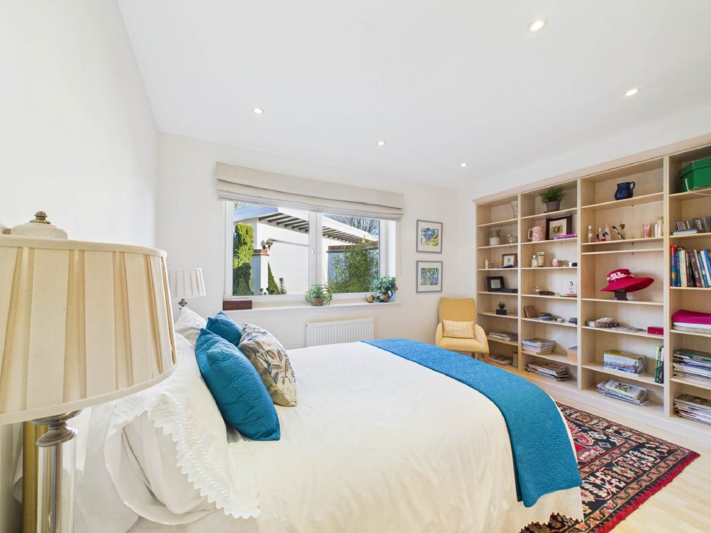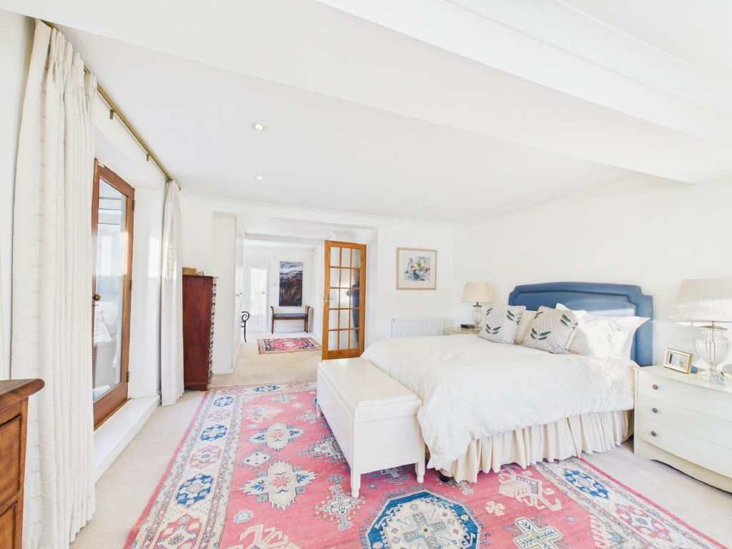 The principal bedroom is a true retreat, stretching across the full width of the house. It features a generous dressing area, a luxurious ensuite with bath and shower, and a sunlit conservatory perfect for quiet reflection while enjoying the garden views.