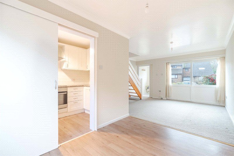 An entrance lobby leads to a dual aspect lounge/dining room with built-in cupboard, under stairs recess, casement door to the rear garden, and sliding glazed door to the front. The kitchen has a range of modern units and worktops, integrated Zanussi electric hob, extractor above, electric oven, Worcester gas central heating boiler, space and plumbing for washing machine, and space for fridge-freezer.