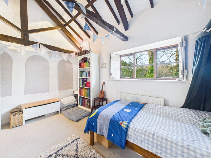 The first floor comprises three well-proportioned bedrooms, a family bathroom and a principal bedroom with en suite facilities. All bedrooms are bright and spacious, with vaulted ceilings and exposed beams that add character and charm.