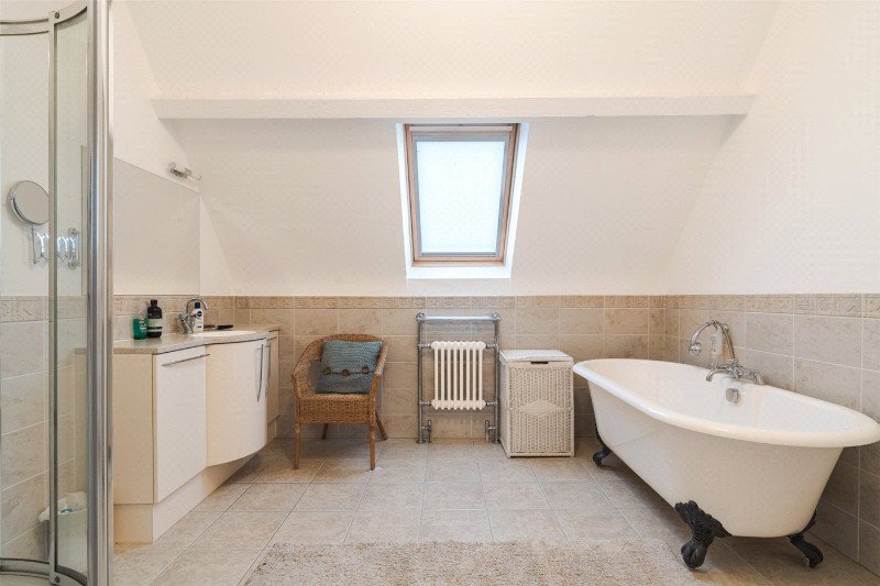 The galleried first floor landing has a rooflight. The large master bedroom has an electric rooflight and a large en suite bath/shower room which features a free standing claw-footed bath. The guest bedroom also has an en suite shower room, and there are 2 further double bedrooms and a family shower room. There is also a first floor utility room with sink, hot water tank and plumbing for washing machine.