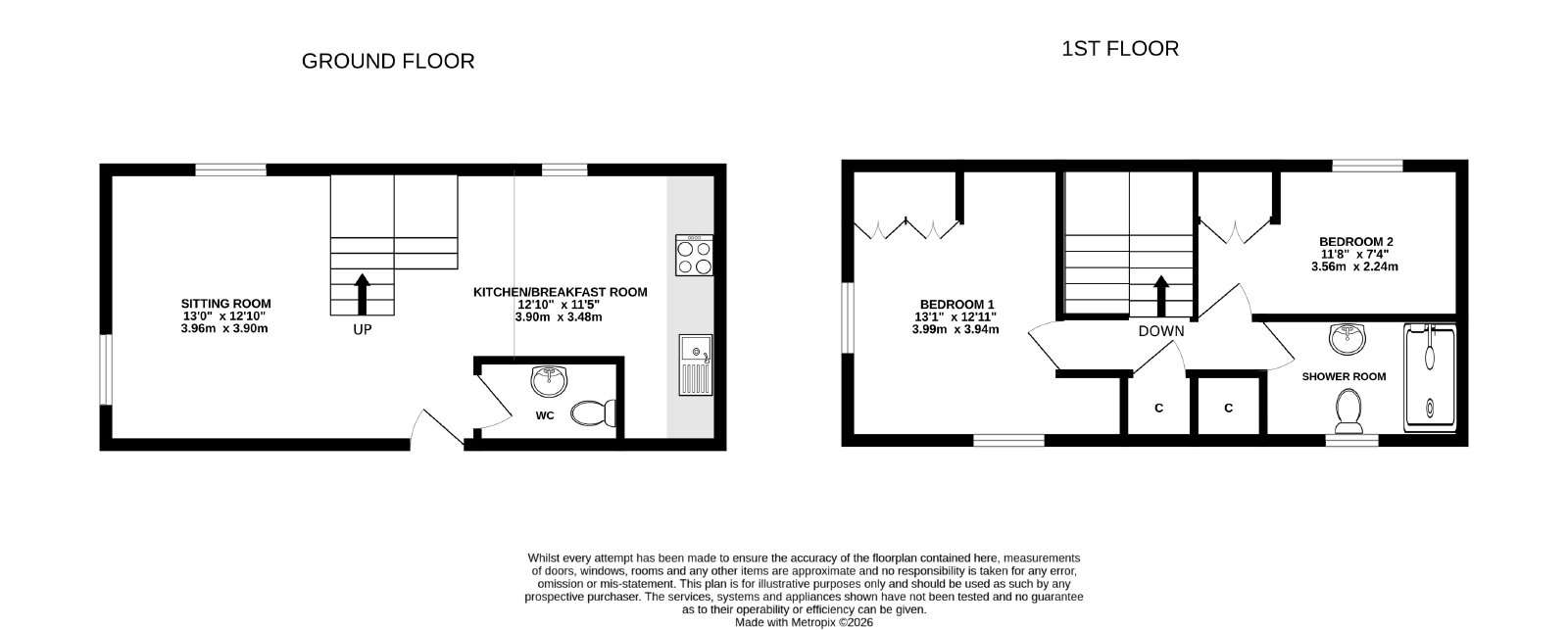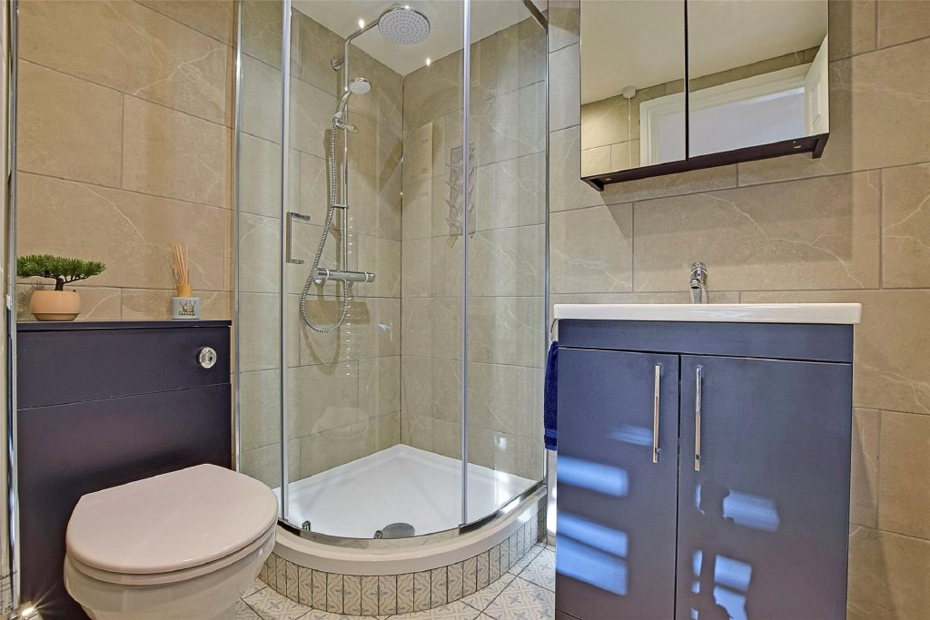 Upstairs, the first-floor landing gives access to two double bedrooms, with Bedroom One being particularly generous and benefitting from fitted wardrobes. There is also a recently fitted, contemporary three-piece shower room with a double shower cubicle, finished to a very attractive standard.