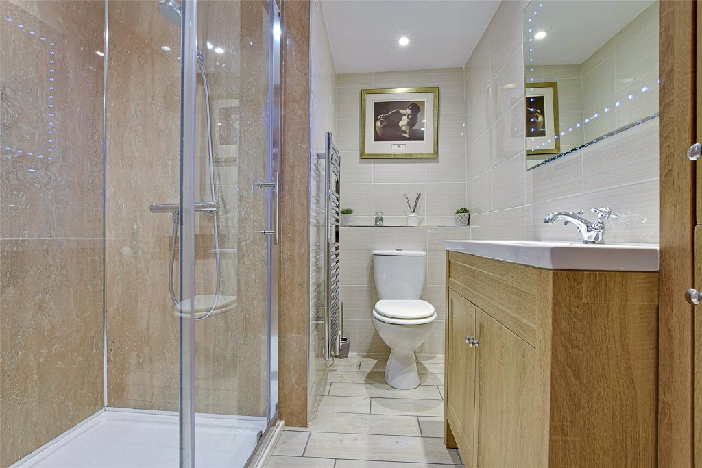 On the top floor are two further bedrooms: Bedroom Four is a lovely double room with a three-piece en-suite, offering excellent flexibility for older children, guests, or as a private suite. Bedroom Five is another well-proportioned double room, again presented in keeping with the home’s contemporary finish.