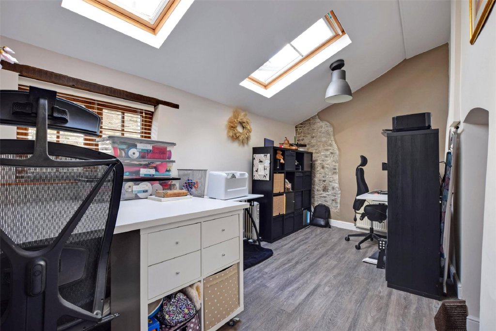 Adding to the property’s charm and individuality is a delightful feature: a “secret” door located to the right of the staircase. This reveals an inner hallway leading to a separate study/craft room, a highly versatile space perfectly suited to home working, hobbies, or creative projects—quiet, tucked away, and ideal for those who value a dedicated room of their own.