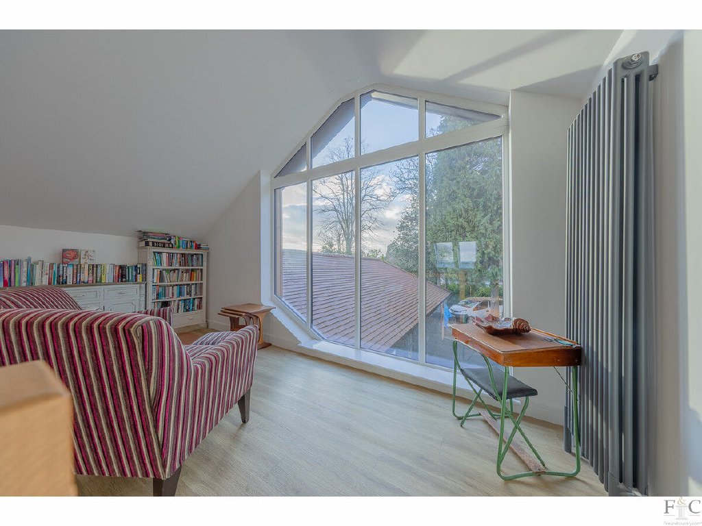 The spacious feel of this impressive house is now continued upstairs. The stairs lead to an upper floor LVT landing where the proportions of the grand apex window, frames a seating area, providing light and warmth. A major attribute of this property is that the linking spaces such as the hall and landing are beautiful spaces in their own rights, not merely corridors leading to other rooms. The landing provides a distinctive design feature and a wonderful upstairs sitting room.