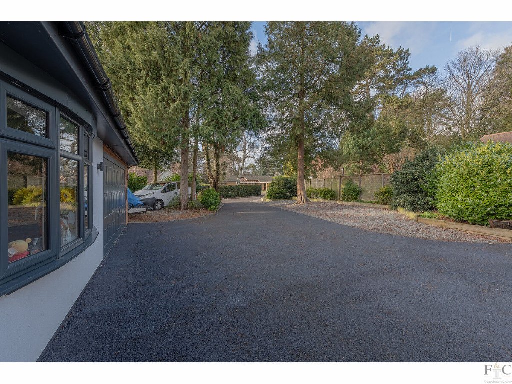Mossdale is a modern English country home, filled to the brim with features combining traditional and contemporary elements. It is the result of a complete rebuild and remodelling. Constructed in 1970 the original bungalow has disappeared. The grounds now showcase an executive five- bedroom house with many stunning bespoke components, the grand design project brought to completion by the present owners of eight years. Their vision worked in tandem with the expertise of architects at NJW design and incorporates an iconic feature window, vaulted ceilings, an open landing and Canadian cedar cladding combining with the white render on the exterior. Indeed, the onlooker would easily believe the property with its distinctive grey graphite windows and hip and valley roof is a new build and essentially it is: windows, wiring and heating date from 2022. It is the outcome of a hugely reimagined, extended dwelling that has been equipped to a high specification, in a highly sought after location.