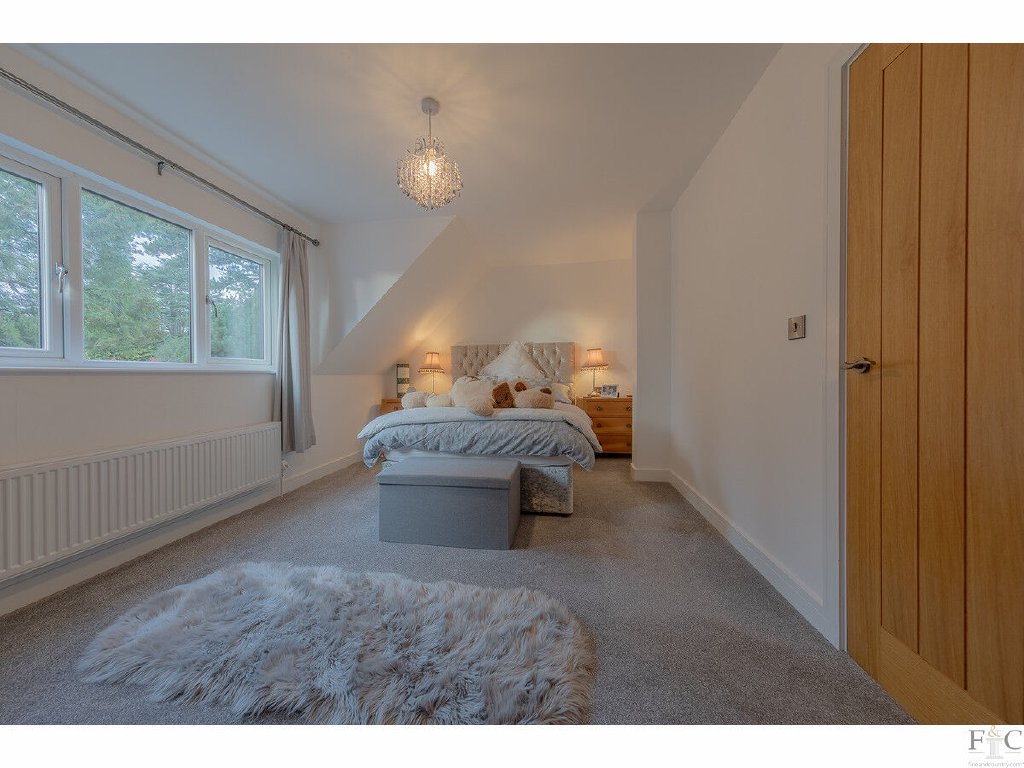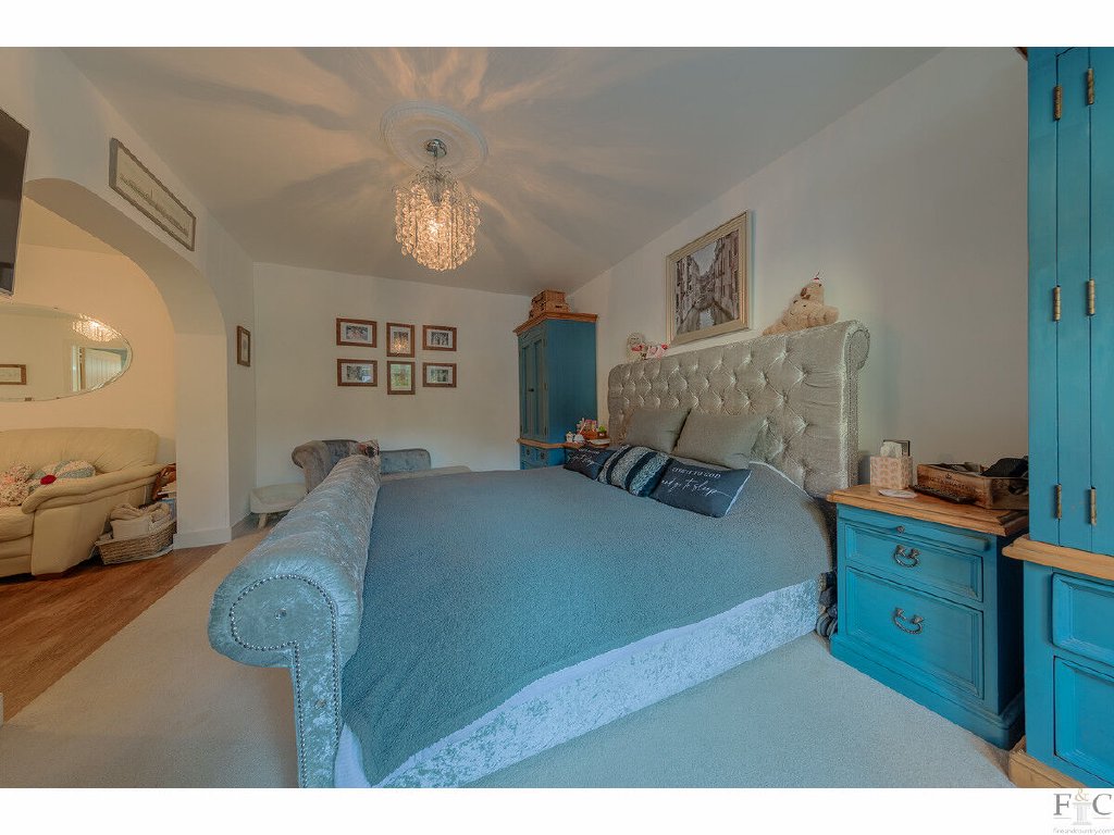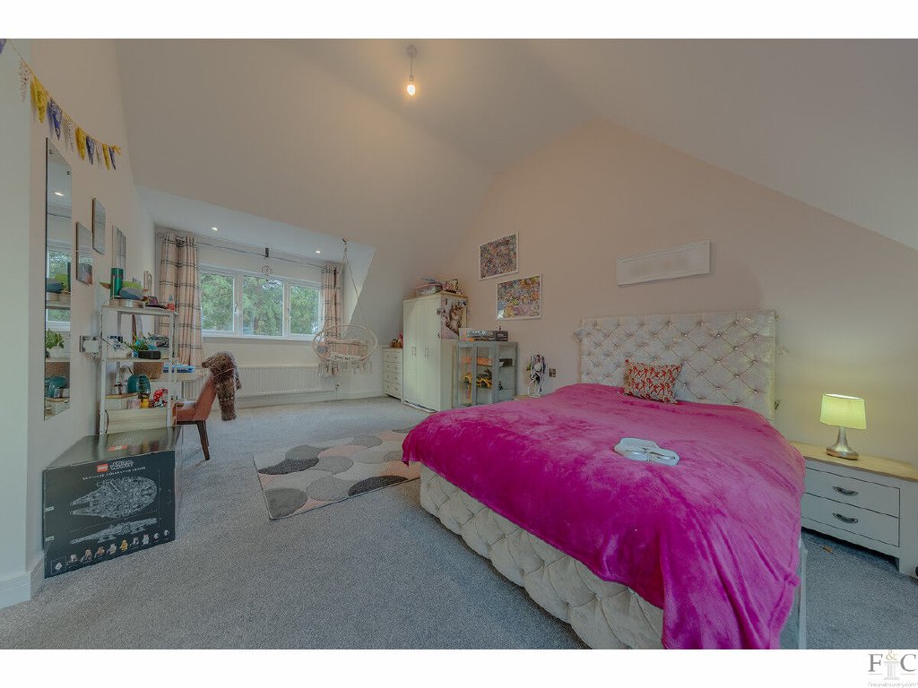 The spacious feel of this impressive house is now continued upstairs. The stairs lead to an upper floor LVT landing where the proportions of the grand apex window, frames a seating area, providing light and warmth. A major attribute of this property is that the linking spaces such as the hall and landing are beautiful spaces in their own rights, not merely corridors leading to other rooms. The landing provides a distinctive design feature and a wonderful upstairs sitting room.