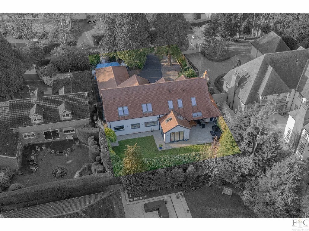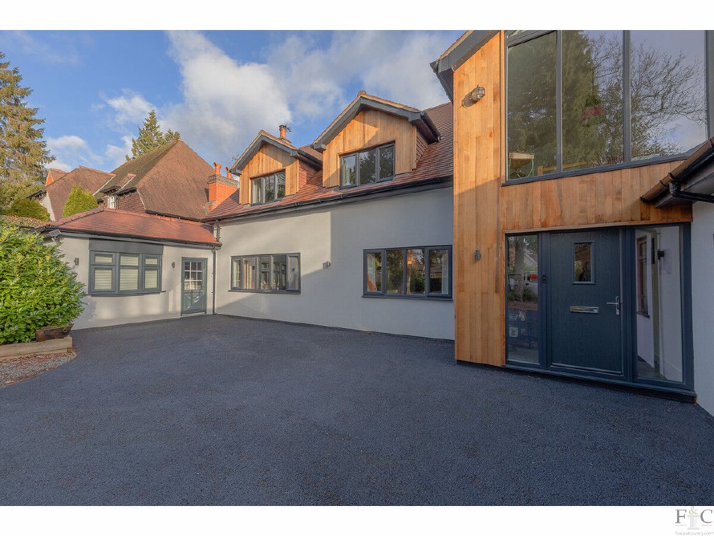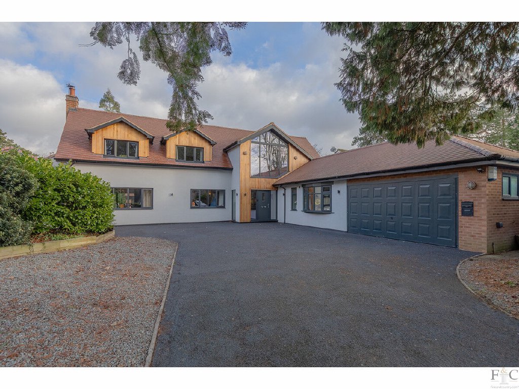 Mossdale is a modern English country home, filled to the brim with features combining traditional and contemporary elements. It is the result of a complete rebuild and remodelling. Constructed in 1970 the original bungalow has disappeared. The grounds now showcase an executive five- bedroom house with many stunning bespoke components, the grand design project brought to completion by the present owners of eight years. Their vision worked in tandem with the expertise of architects at NJW design and incorporates an iconic feature window, vaulted ceilings, an open landing and Canadian cedar cladding combining with the white render on the exterior. Indeed, the onlooker would easily believe the property with its distinctive grey graphite windows and hip and valley roof is a new build and essentially it is: windows, wiring and heating date from 2022. It is the outcome of a hugely reimagined, extended dwelling that has been equipped to a high specification, in a highly sought after location.