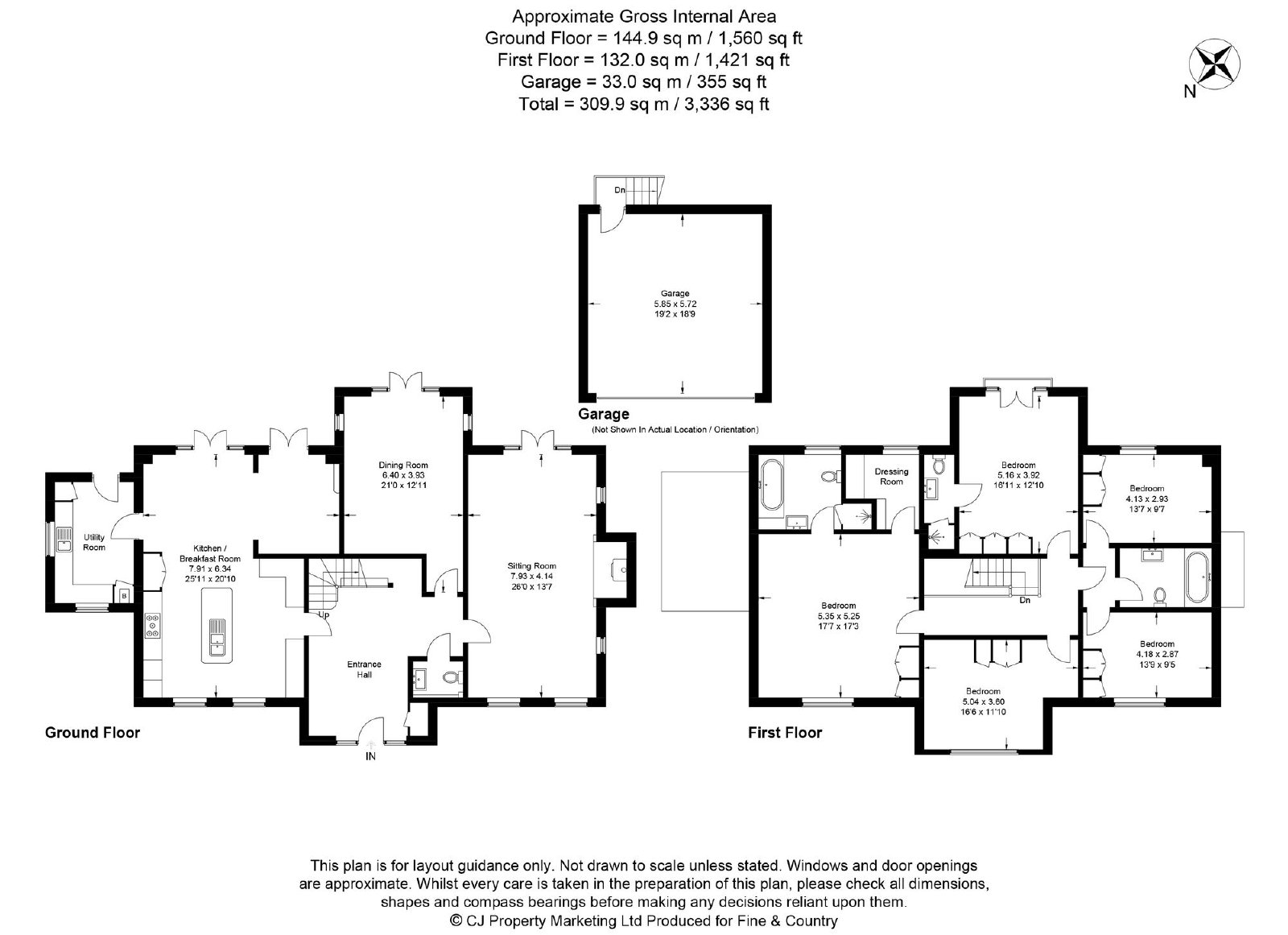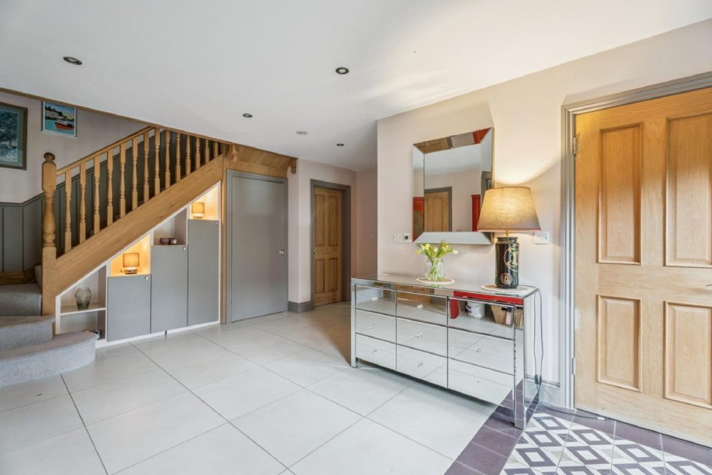 A well proportioned home offering superb accommodation across two floors. On the ground floor there is alarge entrance hall which leads directly through to two large reception rooms. The vast triple aspect sitting room is flooded with natural light and measures approx 8m x 4m with a large feature fireplace and log burner providing a central focal point and character to the room. The second reception room is also extremely spacious with views of the rear garden. The kitchen, breakfast family room is very impressive and provides the perfect space for entertaining. Completing the ground floor accommodation, there is a cloakroom and a utility room. On the first floor, the principal bedroom has a dressing room and en-suite. There is another double bedroom with en-suite and three further double bedrooms and a family bathroom. Outside, the property is approached via a long gravel driveway which leads to the detached double garage and parking area. There is a well stocked front garden whilst the rear garden has a large terrace, ideal for entertaining in the warmer months. There is a area of lawn and mature hedges and trees to the boundaries.