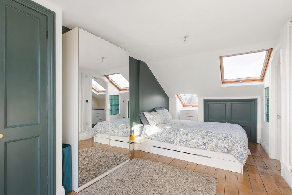 The second floor is dedicated to the principal bedroom suite, offering a spacious room benefitting from extensive fitted storage, an en suite bathroom, and a charming Juliet balcony that allows natural light to flood the space.
