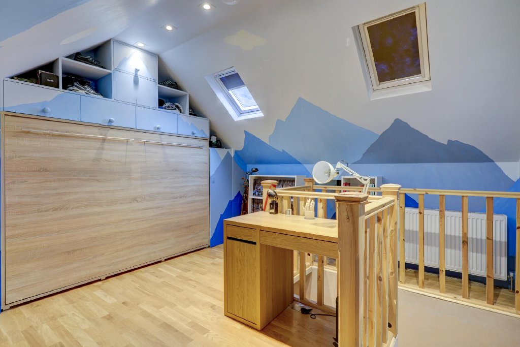 On the first floor you will find a luxurious bathroom with a superb stand-alone bath, a separate shower and twin basins plus two double bedrooms with inset lighting and high skirtings. This includes the principal bedroom that also features a cast iron fireplace, a fitted cupboard, dado rails and wall panelling. On the second floor there is a galleried double bedroom with a vaulted ceiling, Velux windows and storage facilities, which is spacious enough for new owners to install a bathroom should that be required, subject to any permissions required.