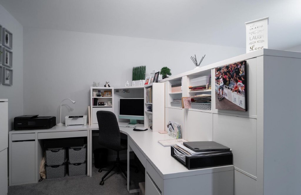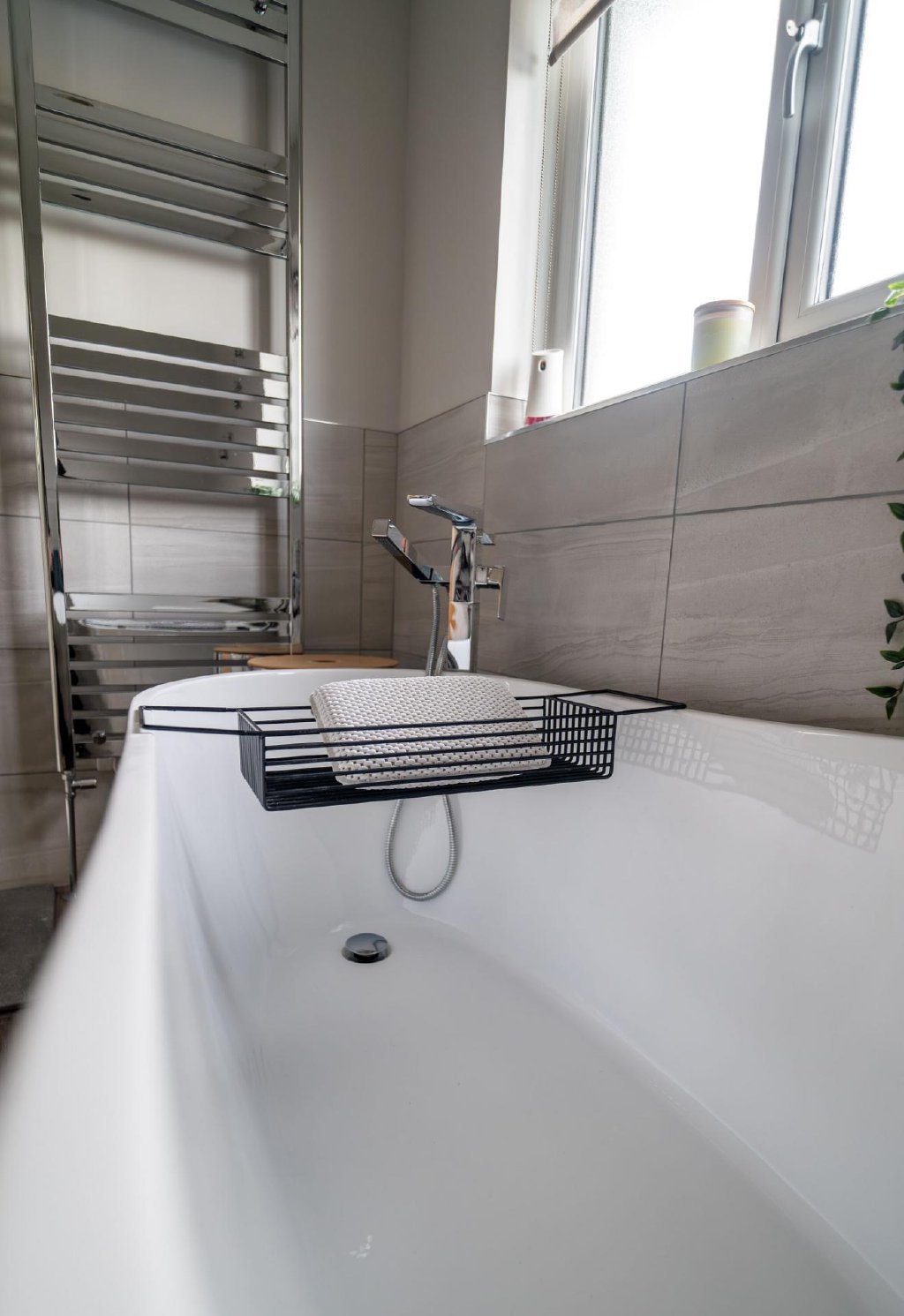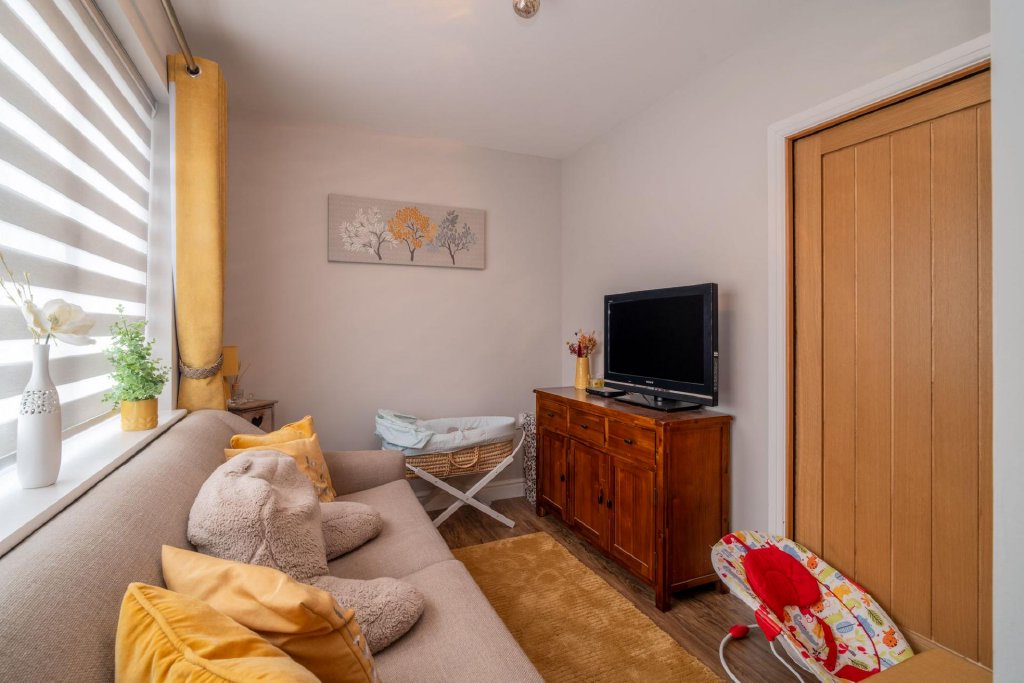 The ground floor also offers a utility room with additional storage, leading into a secure, insulated garage complete with electric door, power and lighting. The versatile front room is currently arranged as a home office and craft/hobby space, while the snug provides a cosy, quiet retreat, adjacent to the stylish downstairs bathroom with toilet and shower. Underfloor heating runs throughout the ground floor, enhancing both comfort and efficiency.
