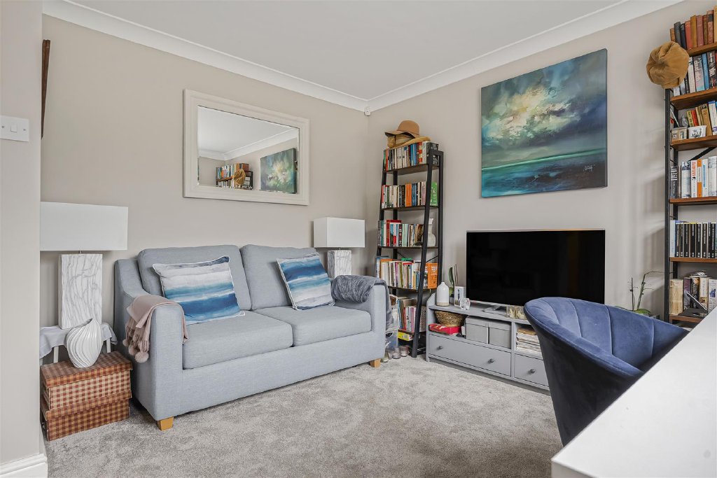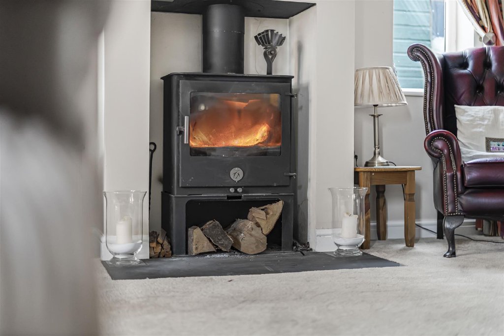 The living room is triple aspect, and benefits from having a contemporary fireplace with a wood-burning stove, ideal for cosy winter evenings.