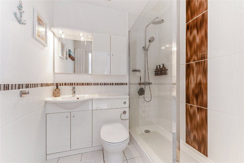 The first floor provides two good double bedrooms, served by a smart family bathroom, along with an airing cupboard housing the boiler. The entire second floor is dedicated to the principal bedroom suite, comprising a spacious double bedroom, a walk-in wardrobe and a contemporary en-suite shower room. The property has been further enhanced with new carpets throughout and plantation shutters fitted to all three bedrooms in 2025. Outside, the garden has been thoughtfully landscaped over two levels, featuring a patio terrace directly to the rear of the house and steps leading up to a raised lawn. Although north-facing, the upper tier enjoys sunlight throughout the day, and a garden shed provides useful additional storage.