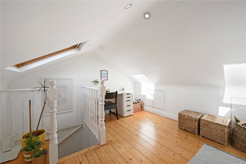 The well designed landing has really opened up the space, with staircase leading up to the converted loft. This can be used a third room, or office space. There is also ample eaves storage space and large south facing skylights pulling in the natural light.