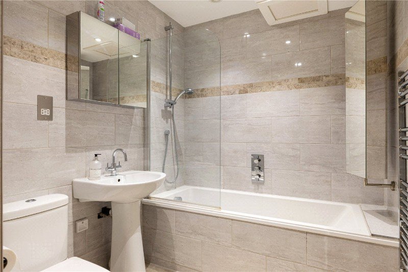 The upper floors offer two further well-proportioned bedrooms and stylish bathrooms, all finished with a consistent contemporary feel. Throughout the house there is underfloor heating, high performance timber box sash double glazing and excellent ceiling heights, contributing to a calm and comfortable living environment.