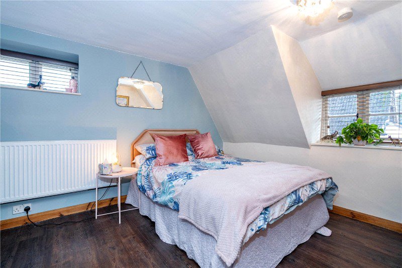 11’4 x 12’7 another double bedroom with window to the rear aspect, fitted wardrobe with hanging rails, exposed timber beams, radiator, power points and wood effect flooring.