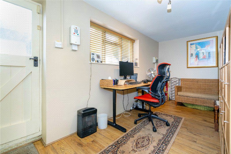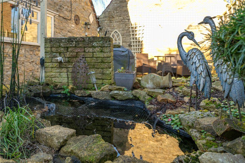A fantastic location with the conservation area of Northborough, with block paved driveway to the side, offering off road parking and leading to a detached GARAGE 15’10 x 7’10 with up and over door power and light connected, adjacent to the garage is a HOME OFFICE 15’10 x 7’2 with window to the side and rear aspects, electric heater, power and light connected with wood effect flooring. Above the garage there is a STORE ROOM 12 x 10’10 with Velux window to the side which would make a great studio or annex conversion (STRPP) with additional eaves storage The rear gardens are a delight with sectioned areas, split level lawns with patio seating and water feature, timber shed, further lawns and cultivated area with trellis work, mature trees and dug beds, there is a further split level courtyard area with outside lighting and ample space for seating.