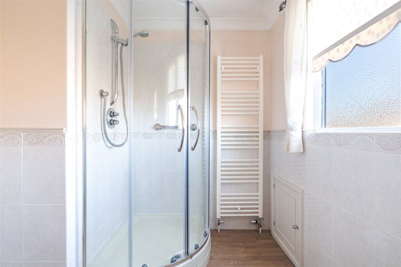 Stairs lead to the first floor landing which has an airing cupboard, and a loft access with a retractable ladder. Bedroom 1 has 2 built-in wardrobes, a double glazed skylight and an en suite shower room with WC, wash basin and towel radiator. Bedroom 2 has wardrobes, and there are 2 further bedrooms and a family bathroom with bath (with shower and screen over), WC, wash basin, towel radiator and double glazed skylight.