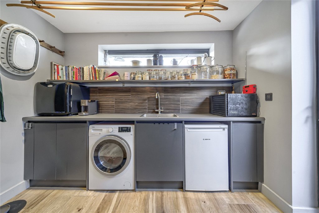 A separate snug to the rear of the house offers a more intimate retreat, perfect for relaxed evenings, while a large utility room and cloakroom provide practical functionality without compromising on style.