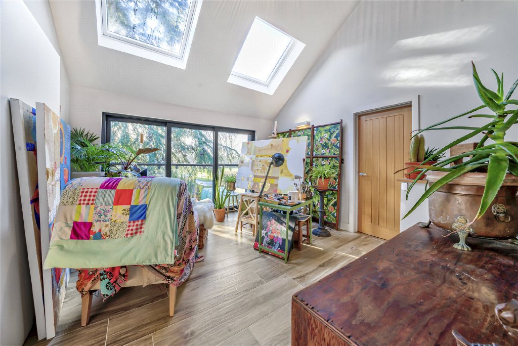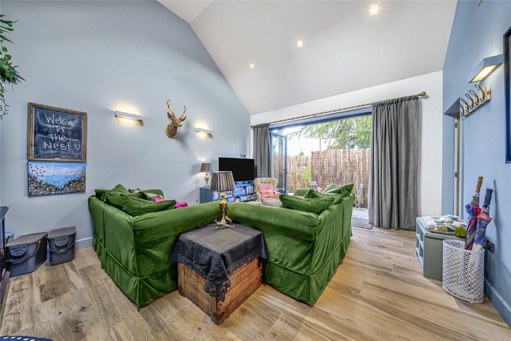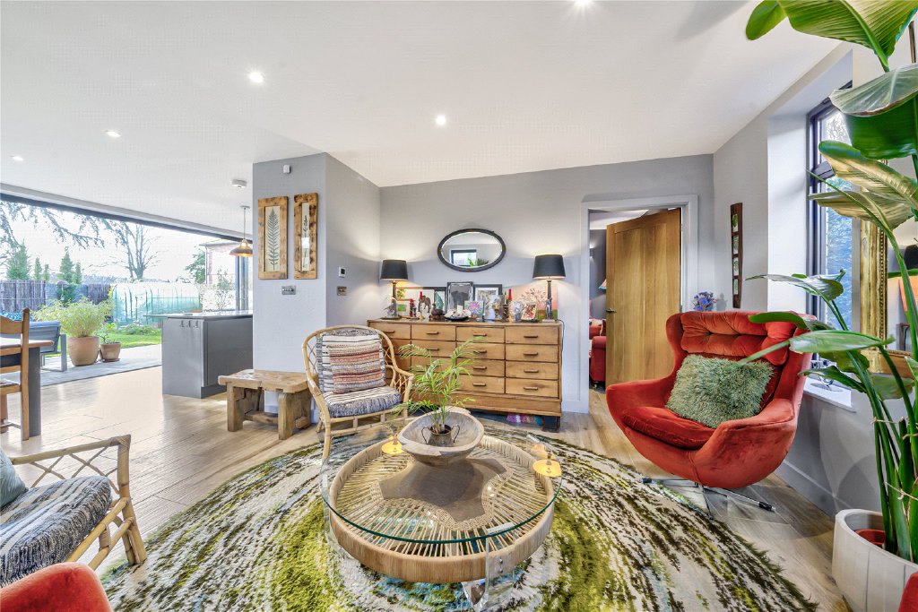 Currently arranged as a double bedroom with en-suite facilities and a striking double-height living space, the annexe offers exceptional flexibility. It has recently achieved recognition, having been listed in the top 5% Airbnb in the World, hosted by the current owners, a testament to both its design quality and guest experience.