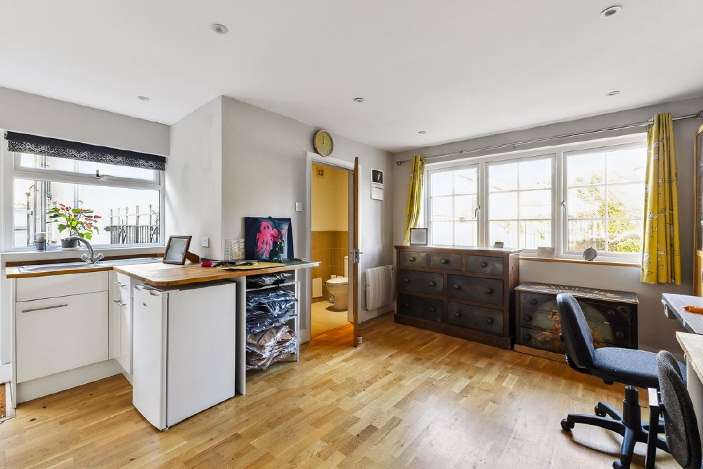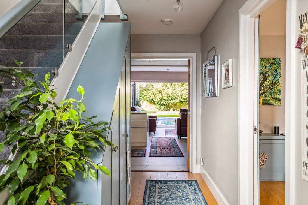 The ground floor features a welcoming entrance hallway leading to a spacious family room, a separate study / snug and a generous open-plan kitchen-dining-living room opening directly onto the terrace via full-width bi-fold doors. The kitchen is equipped with a generous range of high gloss, handleless units with a stone worktop, integrated Siemens appliances and a Quooker hot tap. Additional ground floor accommodation includes a guest WC, utility room and self contained annex with kitchenette and en-suite shower room.