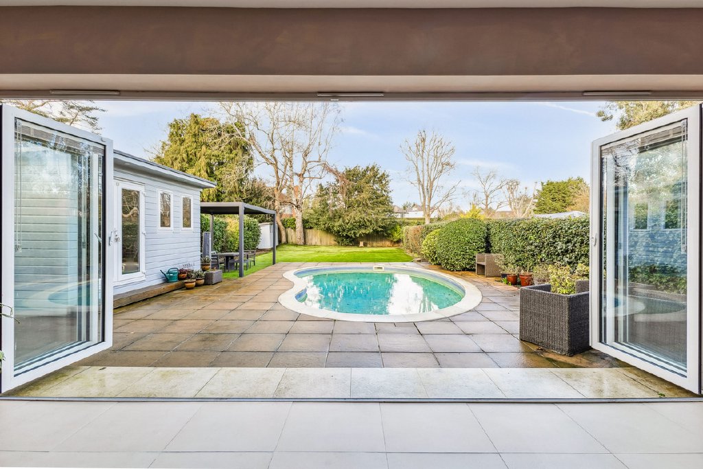 Located on a highly sought-after private and gated no through road, this impressive and beautifully presented five-bedroom detached home offers over 3,000 sq ft of living space, off-street parking for multiple vehicles, a self-contained annex and an outdoor heated swimming pool. Enjoying a quiet, private, and secluded position, the property also boasts a generous garden with a patio terrace and louvred pergola, perfect for outdoor entertaining.