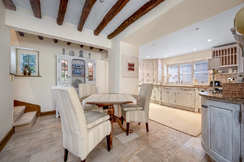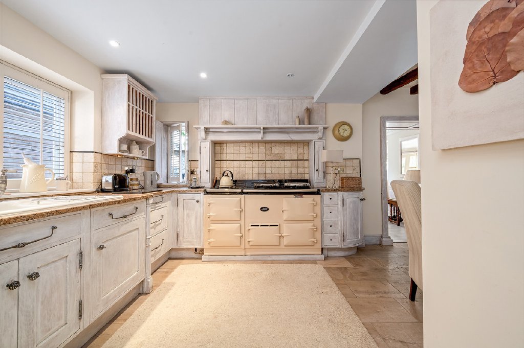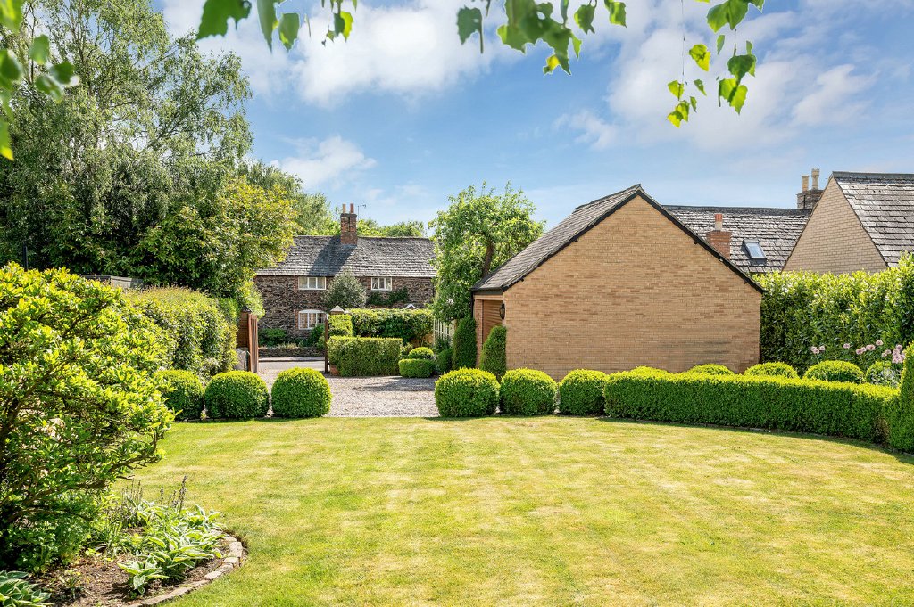 Occupying a coveted village-centre position, this exceptional detached home has been a much-loved family residence for over 25 years. Dating back to circa 1850, it combines a highly decorative historic façade with a surprisingly contemporary, open-plan interior. The heart of the home is a living kitchen featuring an Aga, perfect for both family life and entertaining. Additional elegant reception rooms include a fully panelled dining room with open fireplace, a spacious south-facing sitting room, and a fully glazed garden room opening via French doors onto the garden. Upstairs, three bedrooms are complemented by an ensuite shower room and a large family bathroom. The property is approached via a sweeping gravel driveway, leading to a turning area and detached double garage. Set within immaculately manicured grounds that wrap around three sides of the home, the rear garden is a private lawned oasis, enjoying uninterrupted countryside views. Nearly every room benefits from a southerly aspect, bathing the home in natural light throughout the day. This historic yet contemporary home offers a rare opportunity to acquire a truly unique property in the heart of the village, a perfect blend of character, comfort, and elegance.