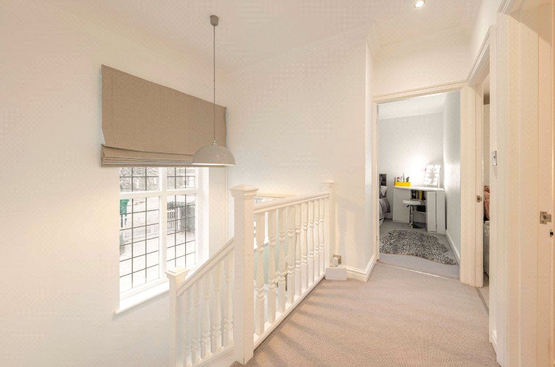 The first floor is arranged around a central landing and offers four bedrooms and two bathrooms.